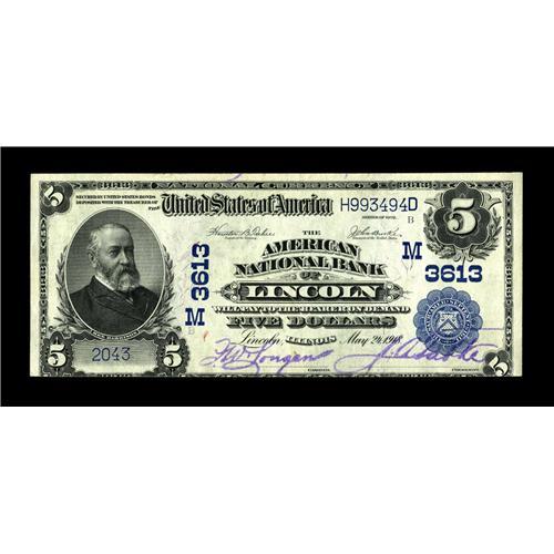 Lincoln, IL - $5 1902 Plain Back Fr. 606 The American N