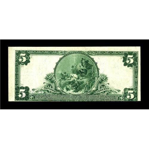 <B>Lincoln, IL</B></I> - $5 1902 Plain Back Fr. 606 <B>The American NB</B></I> Ch. # (M)3613<BR>Once named the German American National Bank, this institution adopted a new name during World War I. It issued $5 Plain Backs and Type 1 only under the new nomenclature prior to its failure in the Spring of 1934. The purple stamped signature are fully intact, but the bottom margin is slightly cut in. <B>Very Fine.</B></I><BR><BR><b>Shipping:</b> Coin/Currency (<a target="_blank" href="http://www.heritageauctions.com/common/shipping.php">view shipping information</a>)