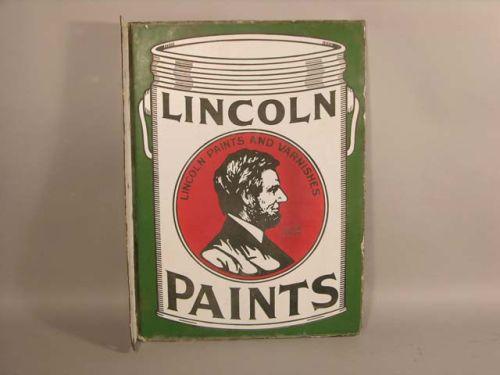 Porcelain flange sign for Lincoln paints - 2 sided, 14.5" x 20". Some edge wear.