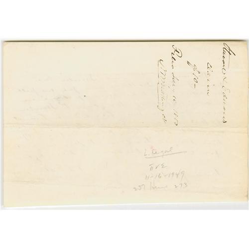 <B>Lincoln Law Partner, John Todd Stuart.</B></I> Autograph Document Signed "Stuart & Edwards". No place [Sangamon Co., Ill.], Jan. 8, 1850, one page, oblong octavo. A $10 fee receipt to Samuel Smith, administrator of the estate of Jordan P. Smith, for attending to his court application to sell the latter's real estate. From the Henry E. Luhrs Collection.