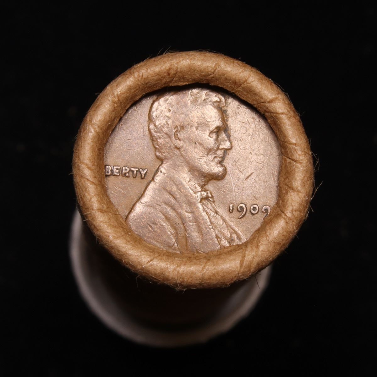 Lincoln Wheat cent 1c orig roll, 1909 end, VDB other end
