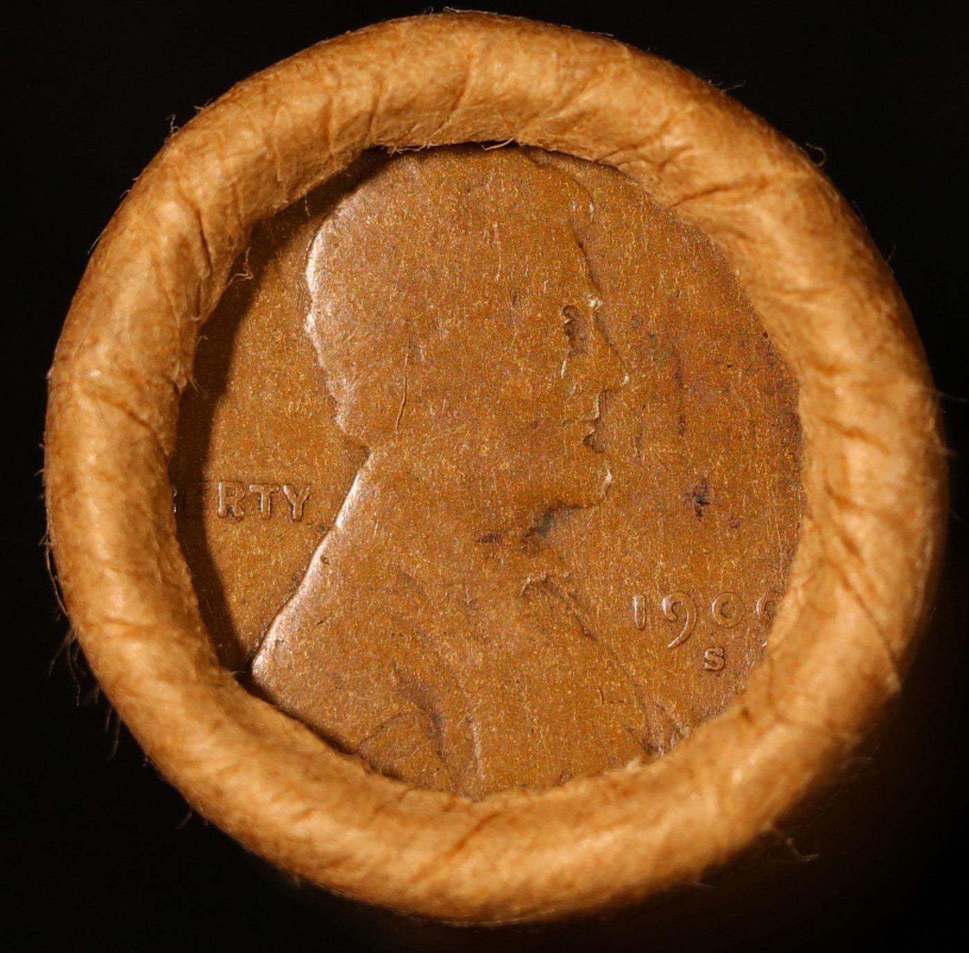 Lincoln Wheat cent 1c orig roll, 1909-s end, VDB other end