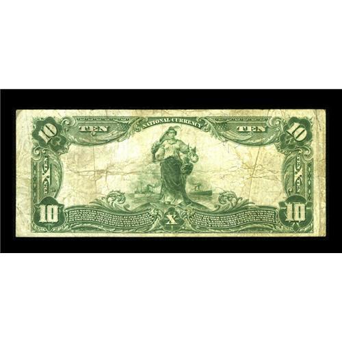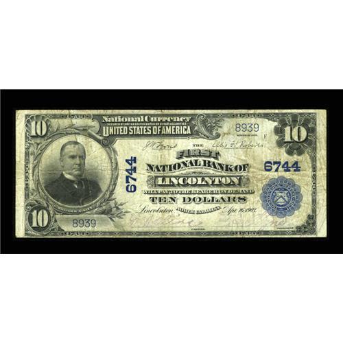 <B>Lincolnton, NC</B></I> - $10 1902 Plain Back Fr. 624 <B>The First NB</B></I> Ch. # 6744<BR>While small notes from this bank are relatively common, large notes from here are another story entirely, with the census standing at just four pieces, including this example. All are in about the same grade, with this the sole Plain Back reported. <B>About Fine.</B></I><BR><BR><b>Shipping:</b> Coins & Currency (<a target="_blank" href="http://www.heritageauctions.com/common/shipping.php">view shipping information</a>)