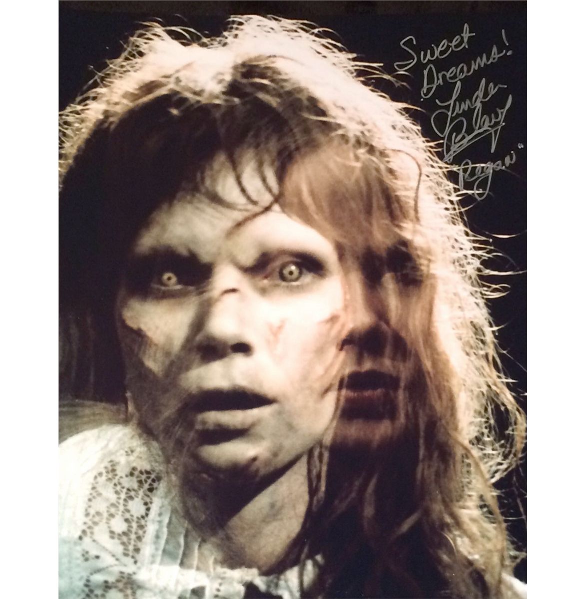 Large color 11x14 signed image double exposed to show eerie effect from the Exorcist. She has signed and added Sweet Dreams and the characters name Regan