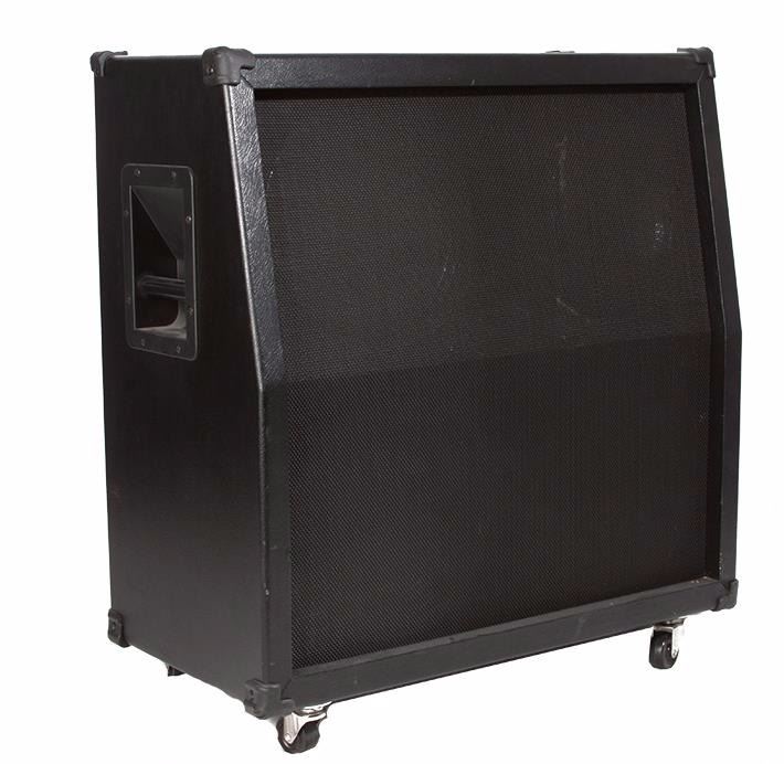 One guitar speaker cabinet featuring: spider valve 412VS speaker cab made by Line 6, closed back cab, 320-watt, 4x12" slant cab, stereo inputs, custom celestion speakers and measurements of 28" l x 14" w x 30" h.