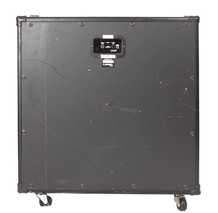 One guitar speaker cabinet featuring: spider valve 412VS speaker cab made by Line 6, closed back cab, 320-watt, 4x12" slant cab, stereo inputs, custom celestion speakers and measurements of 28" l x 14" w x 30" h.