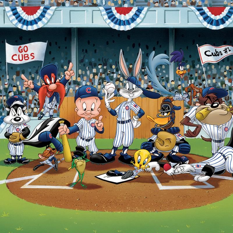 "Line Up At The Plate (Cubs)" is a limited edition giclee on paper from Warner Brothers featuring iconic Looney Tunes characters in Chicago Cubs MLB uniforms. It comes numbered, with hologram seal, and a Certificate of Authenticity. Measures approximately 20" x 16" (with border), 16" x 12" (image).