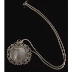 Line Vautrin necklace, attribution, broad pendant in handcrafted silver with a large inset abalone shell, 15.5”l
