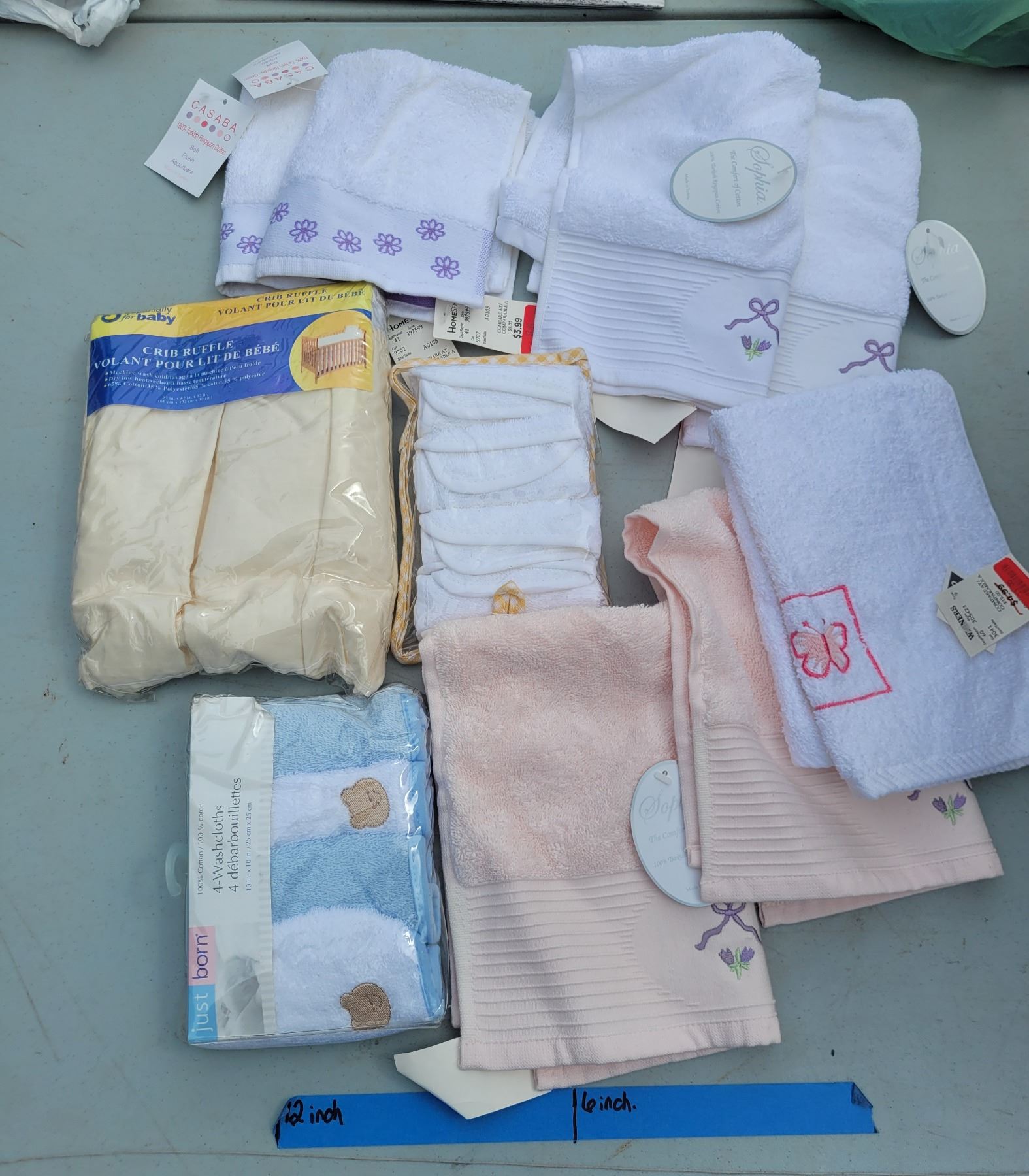 Linen + Baby Lot - Tea Towels, Wash Cloths, Crib Ruffle