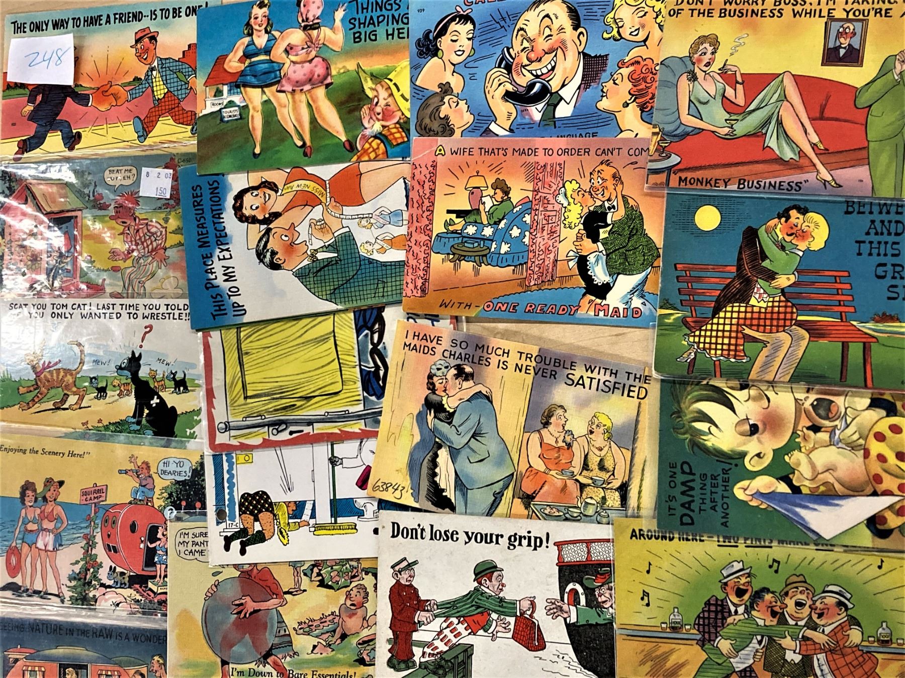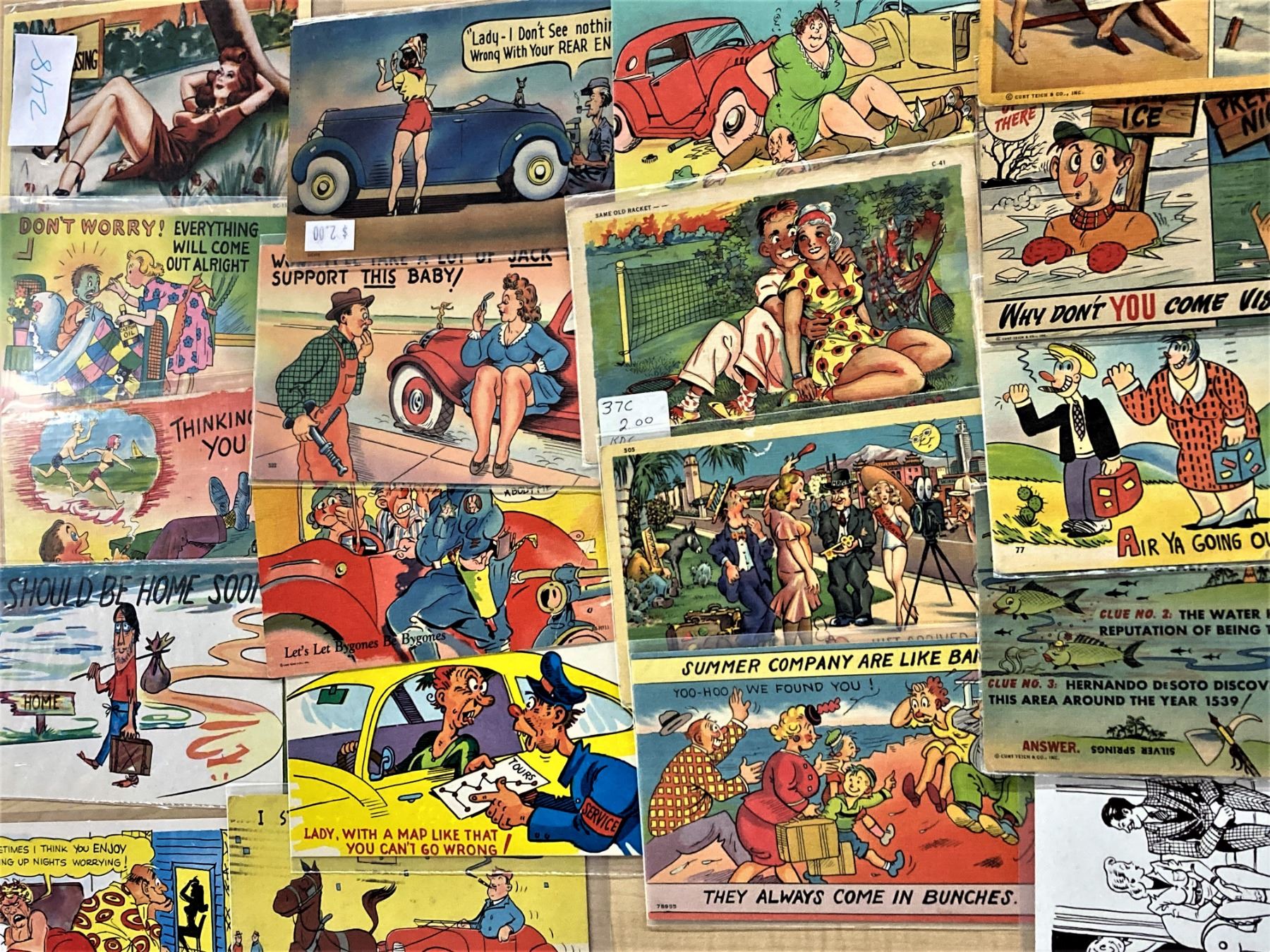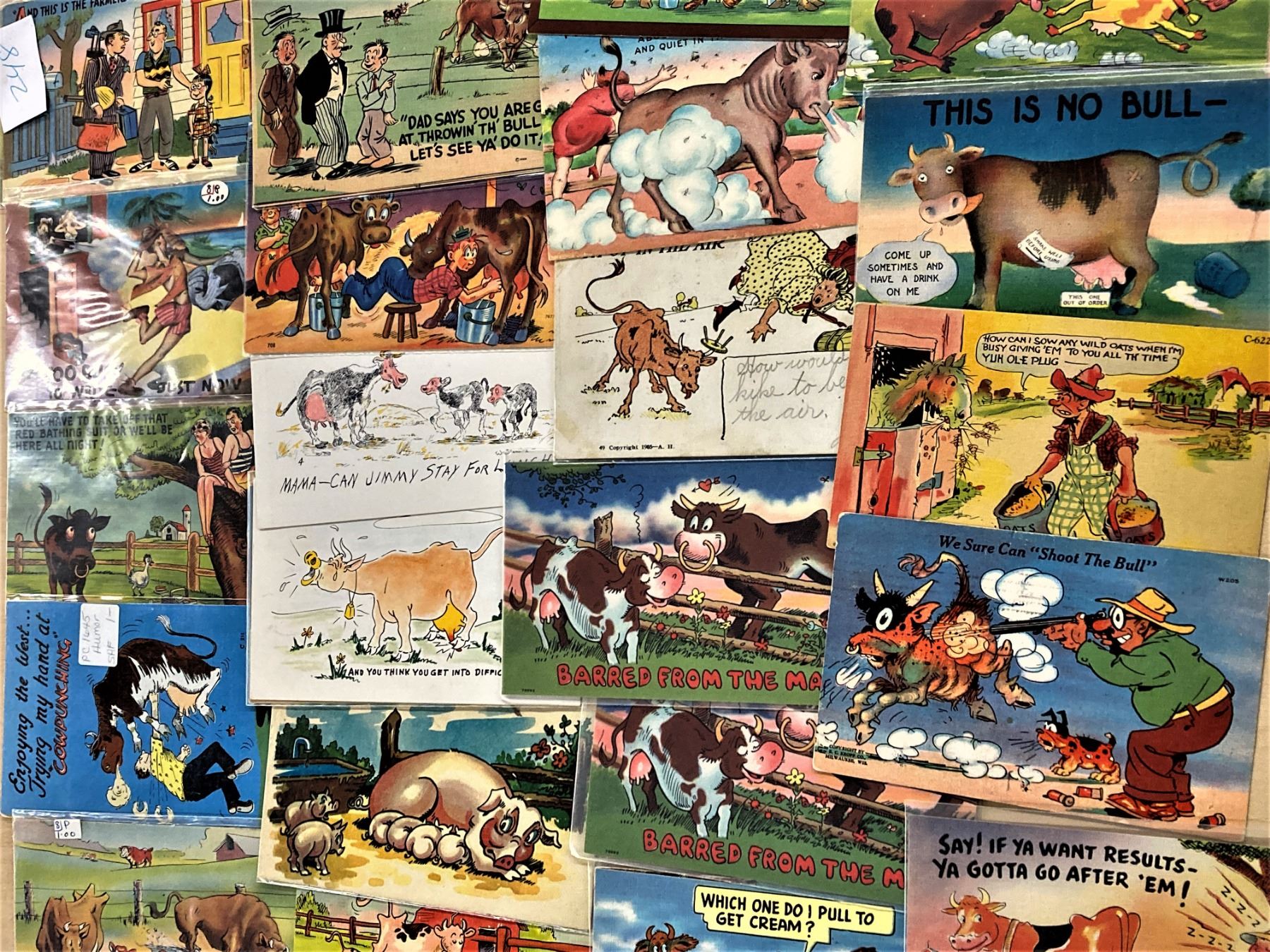 Approx. 300 humor postcards. Mostly linens. Animals, ladies, drinking, etc.