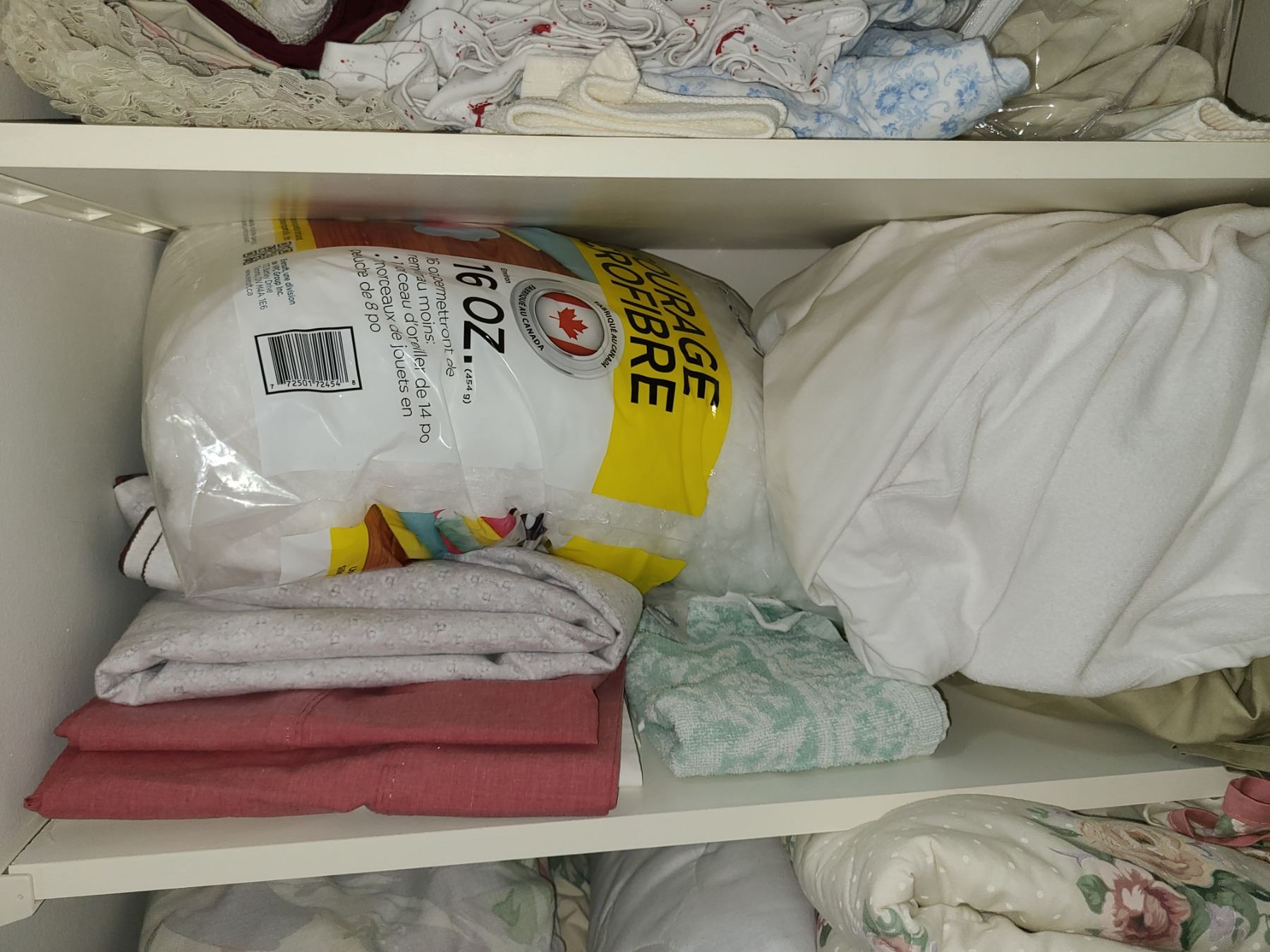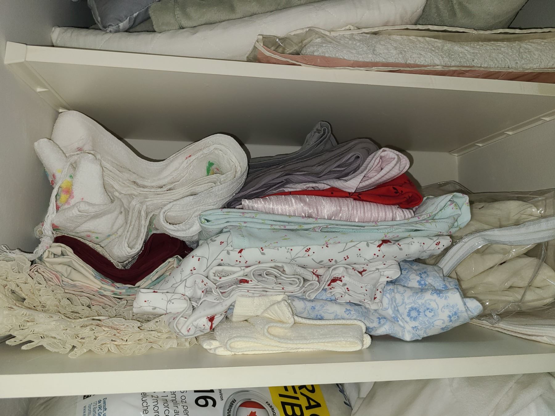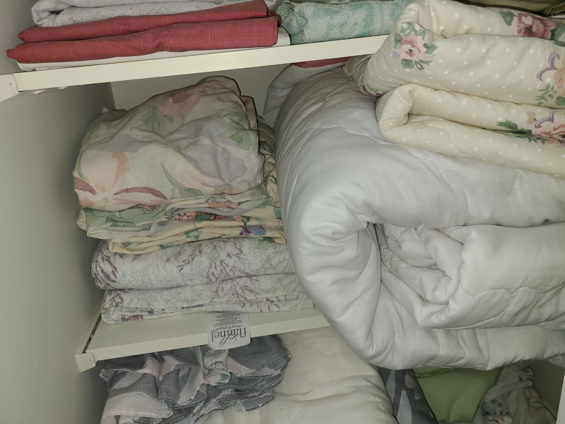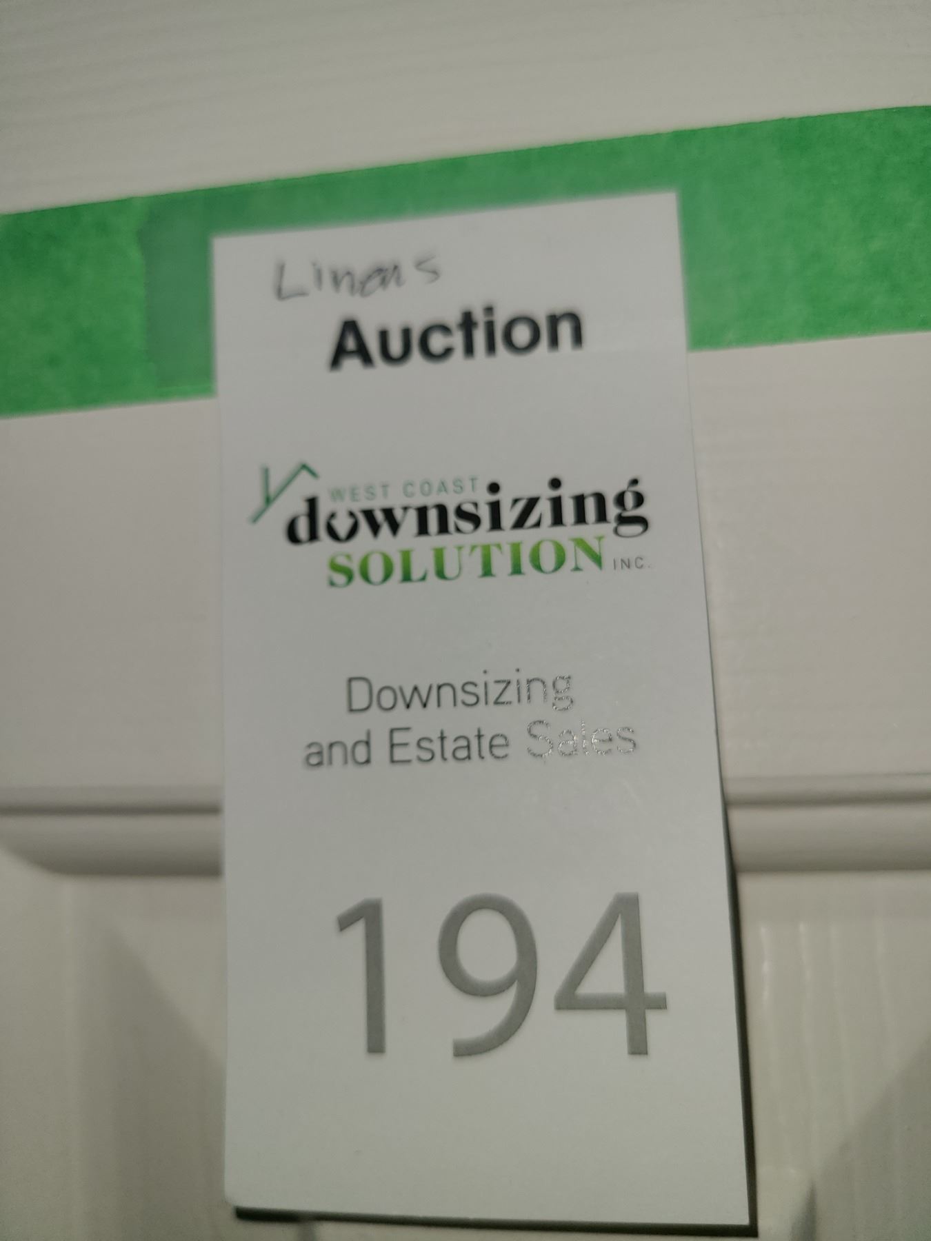 Linens for Queensize bed and table linens. Bring packing material and pick up at 9am