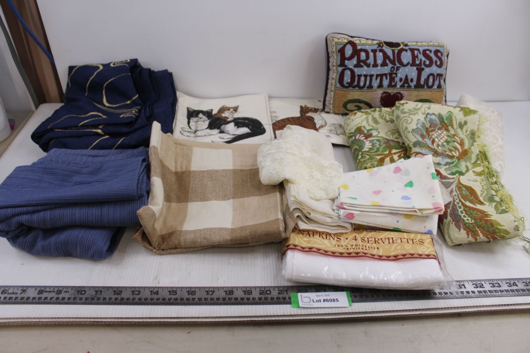 Linens Lot (Table Cloths, Runners, Doilies, Pot Holders, Napkins, Pillow "The Princess of Quite-A-Lot", Fabric)