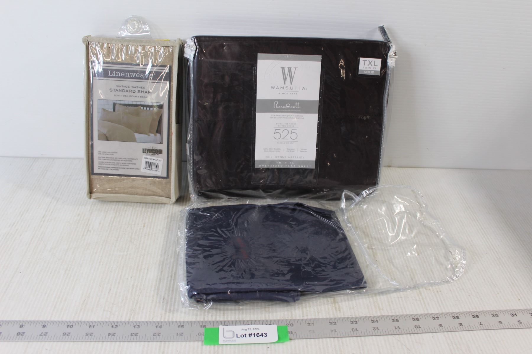 Linenweave Vintage Washed Standard Sham 20" x 25", Wamsutta Twin XL Oversized Flat Sheet, Navy Sham
