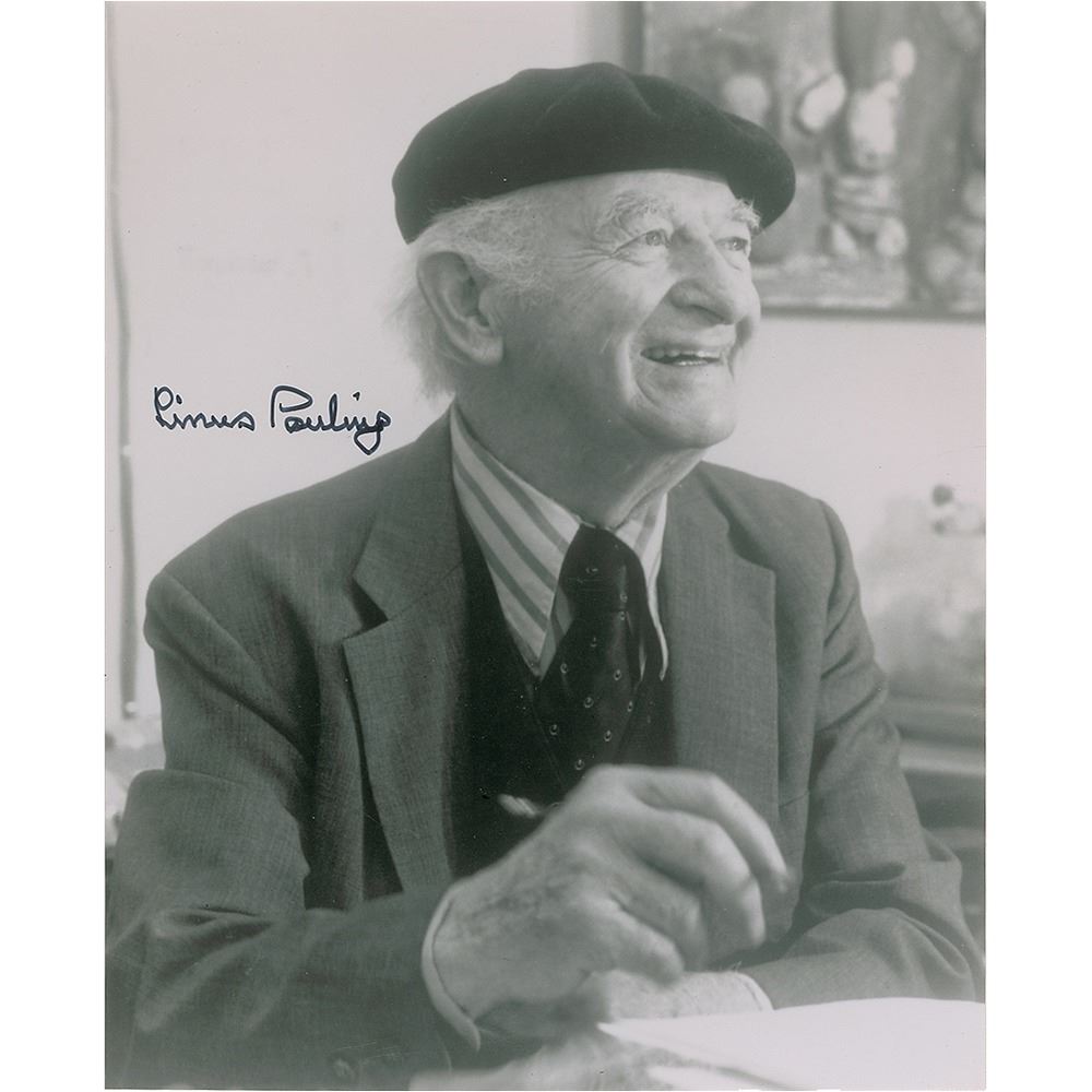 Glossy 8 x 10 photo of Linus Pauling in his later years, signed in black felt tip. In fine condition.