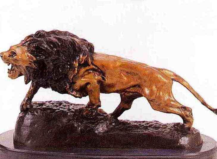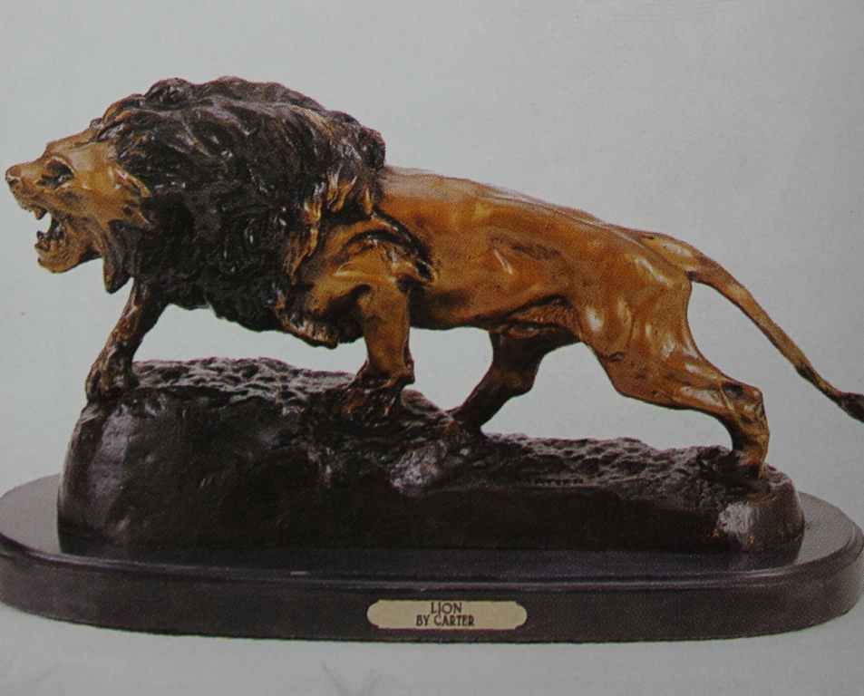 "Lion" Bronze Sculpture - After Carter - Beautiful Color Patina - Mounted On A Fine Italian Marble Base - Beautifully Detailed - Signed - Mint Condition - 13"H X 21"W - Lost Wax Cast Bronze