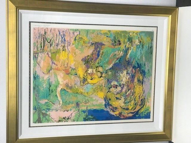 "Lion Couple" by LeRoy Neiman (1921-2012) - Hand signed limited edition serigraph #296 of 300 - Includes Certificate of Authenticity - Framed size = 54" wide x 44" tall