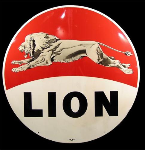 "Lion Gas" porcelain 2 sided sign 60 " diameter