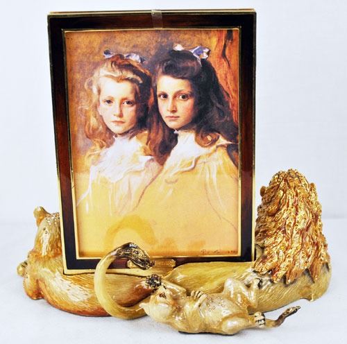 Original lion family father mother and baby jungle jay strong water picture frame come with original box and certificate of authenticity. Highly collectible magnificent limited edition strong water with Swarovski crystals. This is a heavy item. Size: 9X7X10 inches.