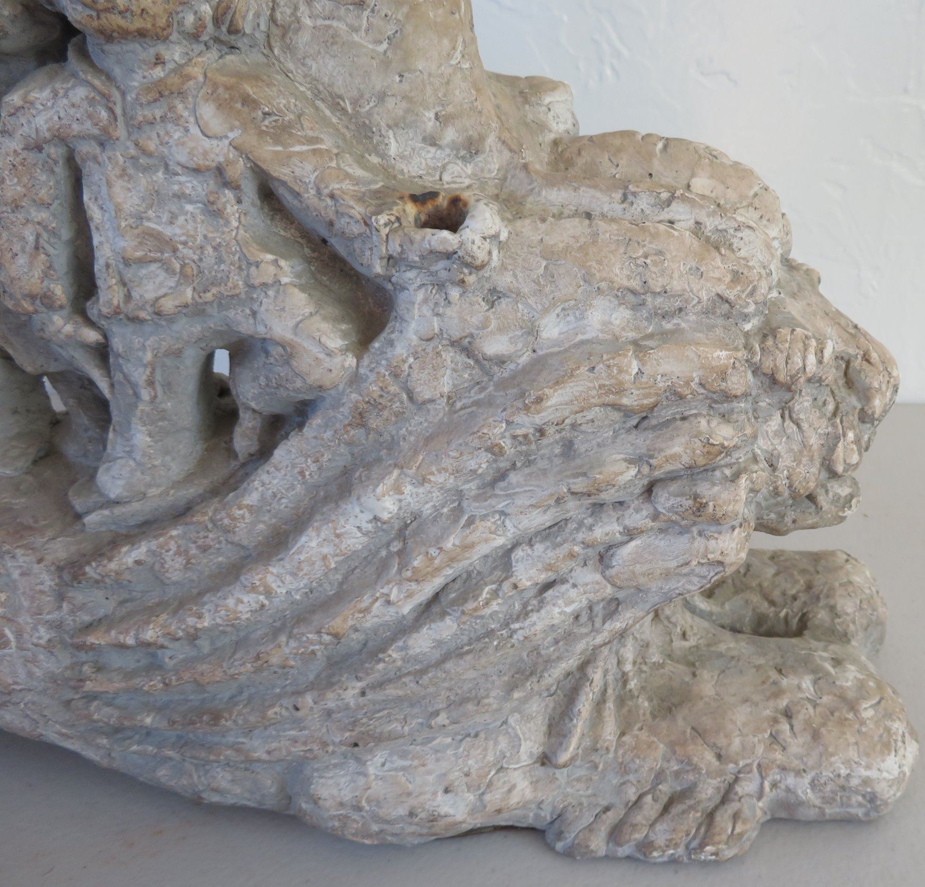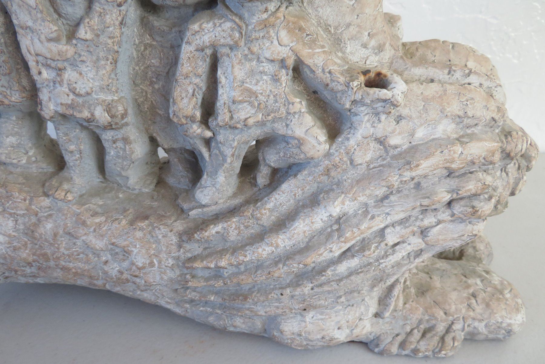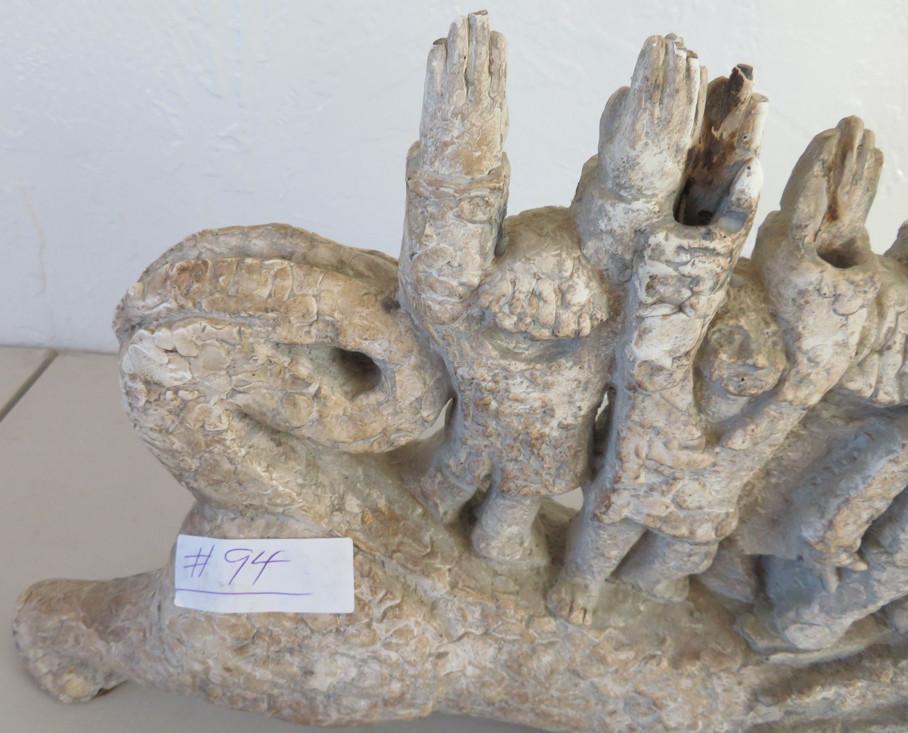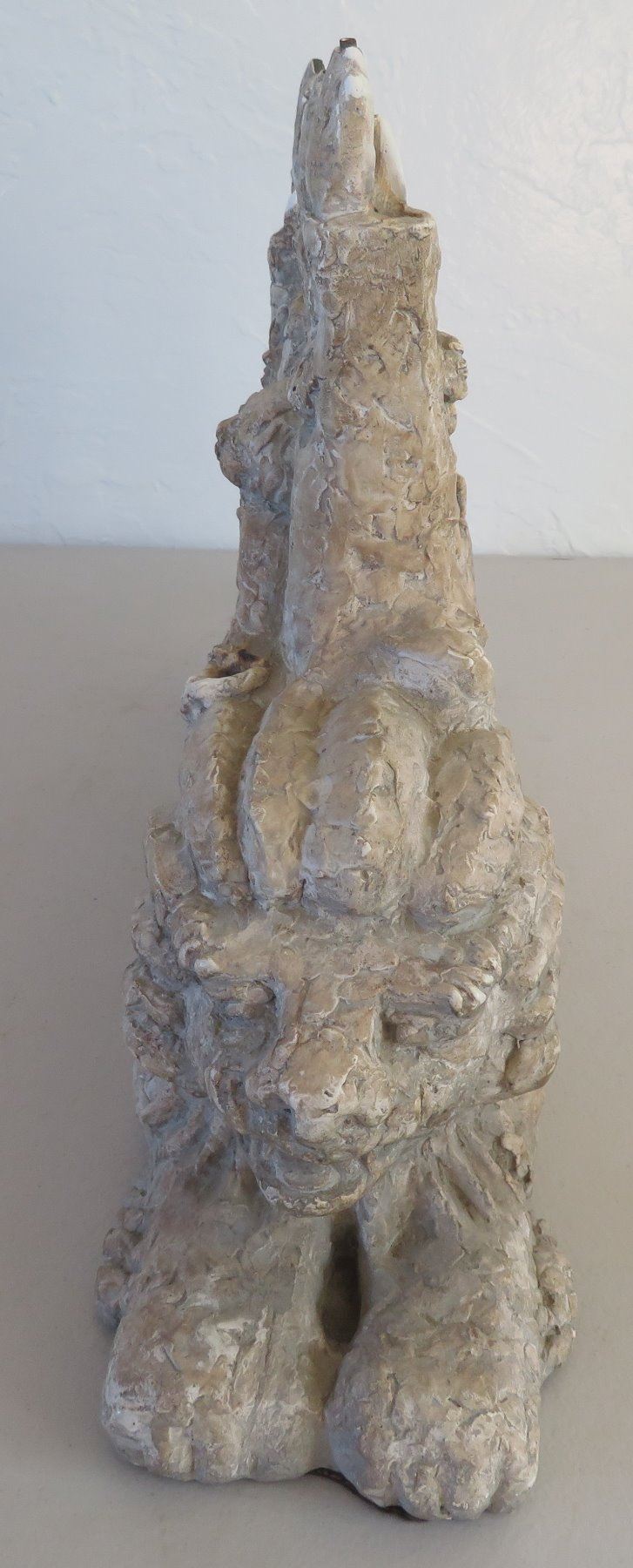 Lion w/Human Effigies Candlestick Holder, c. 1900. Made of soapstone, the item measures 20" x 13" x 6". Possibly German. Weighs approx. 35 pounds. Condition: Wear and chips, see images. Shipping: $65.00 USA estimate only, w/insurance and signature due to heavy weight and value.