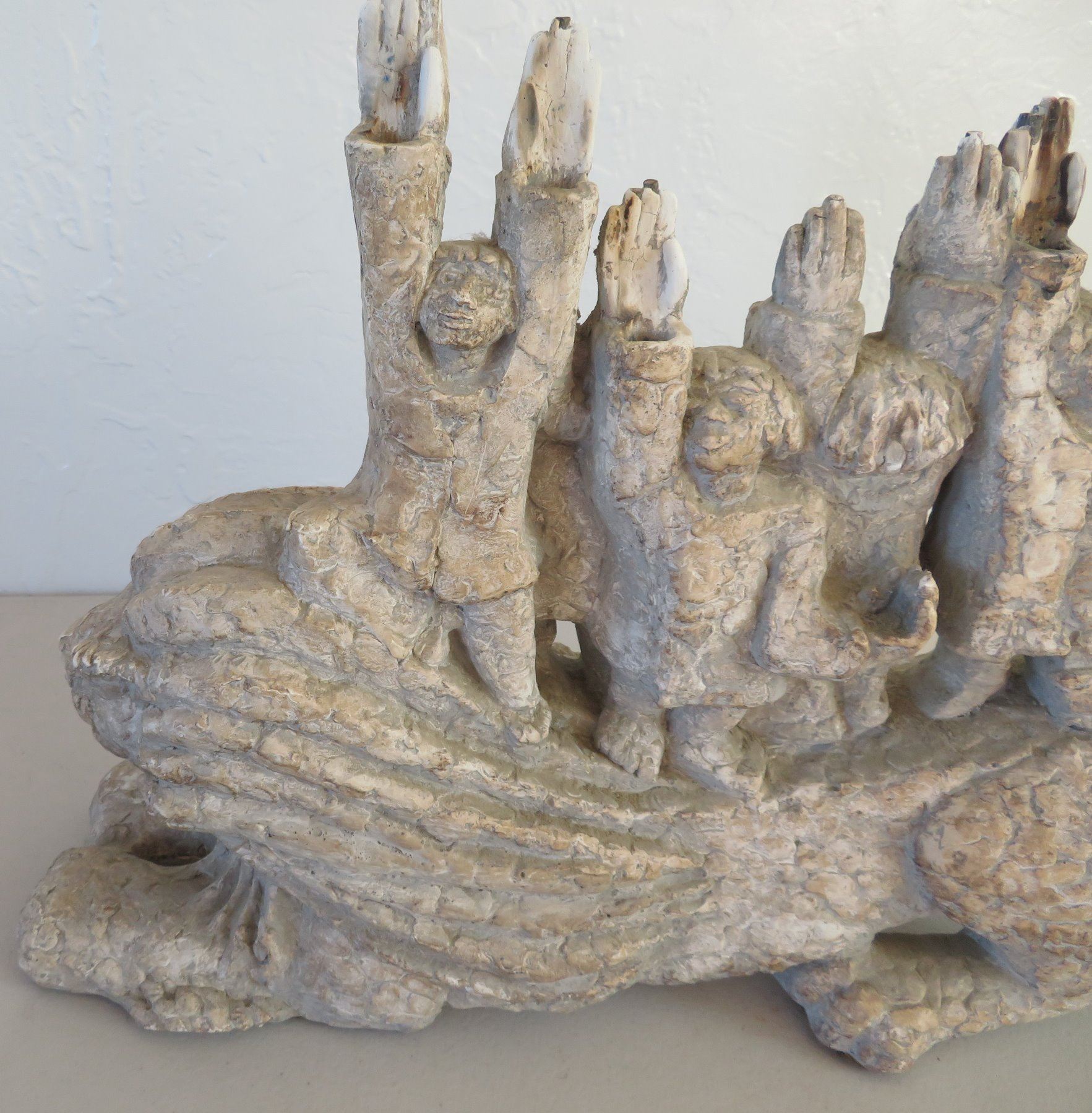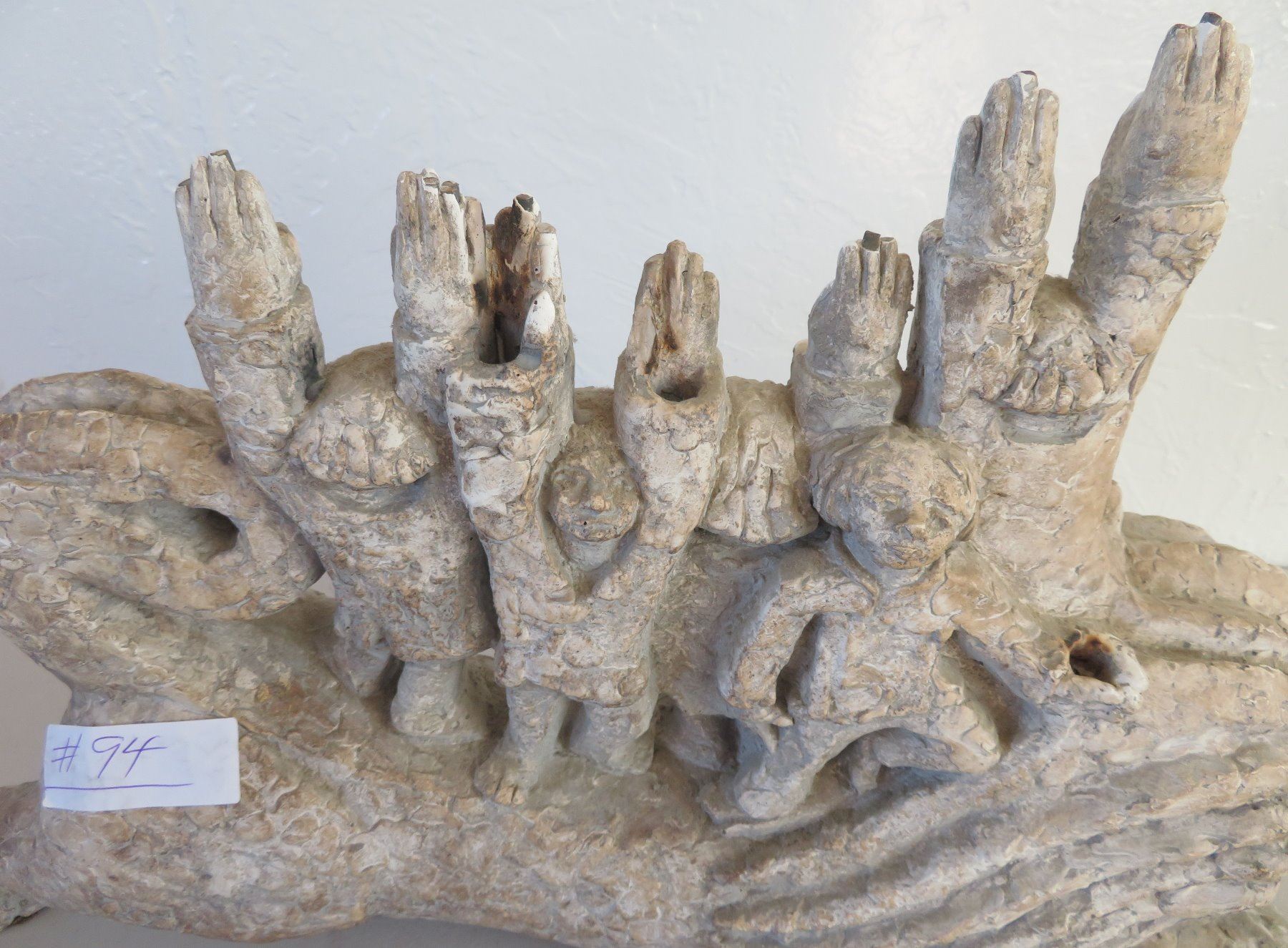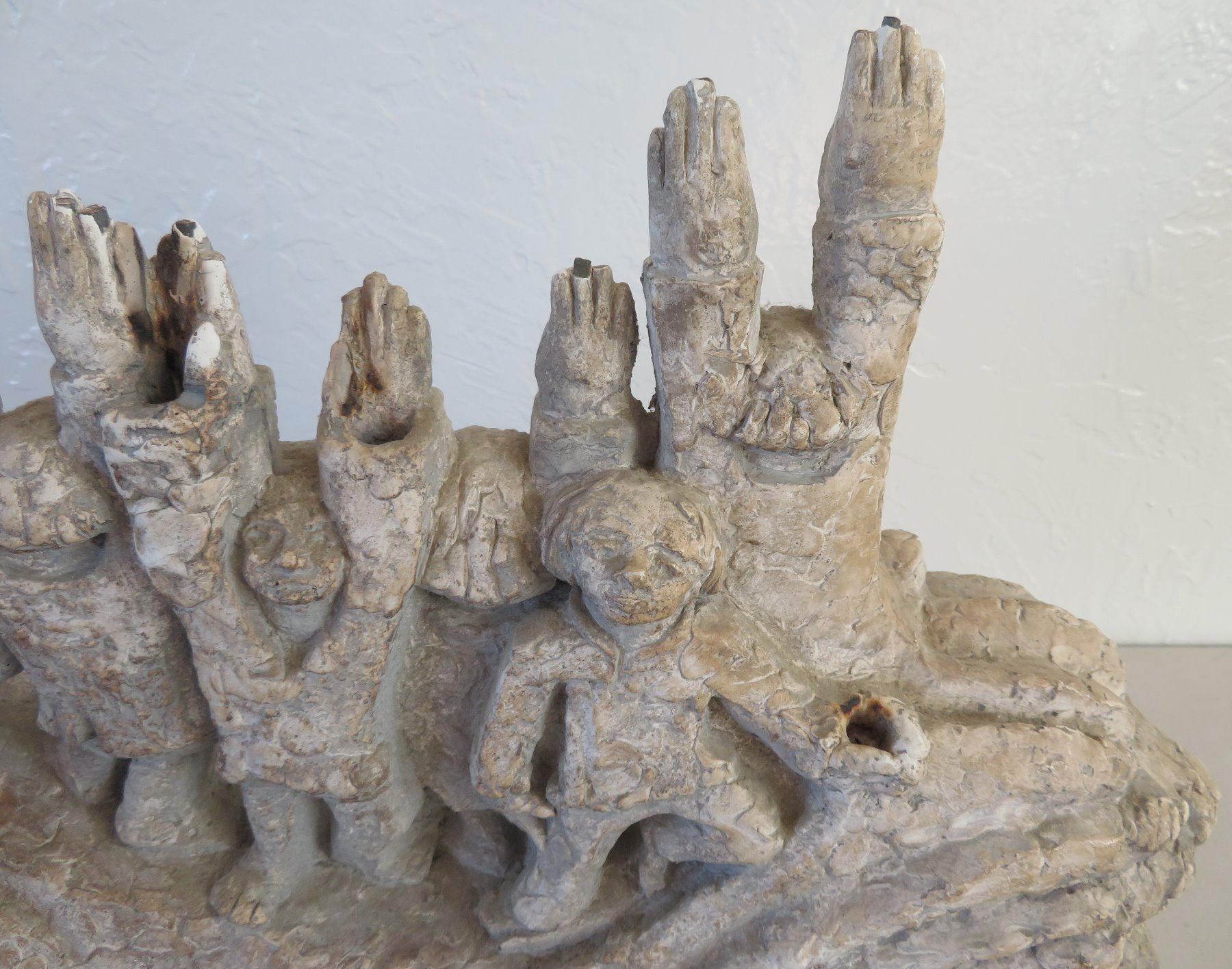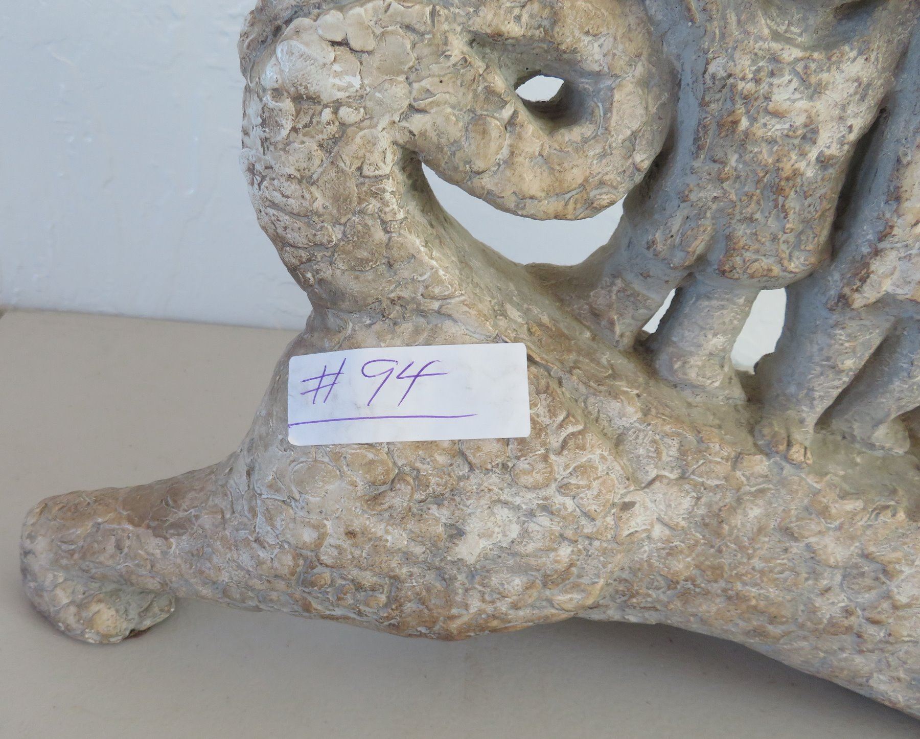 Lion w/Human Effigies Candlestick Holder, c. 1900. Made of soapstone, the item measures 20" x 13" x 6". Possibly German. Weighs approx. 35 pounds. Condition: Wear and chips, see images. Shipping: $65.00 USA estimate only, w/insurance and signature due to heavy weight and value.