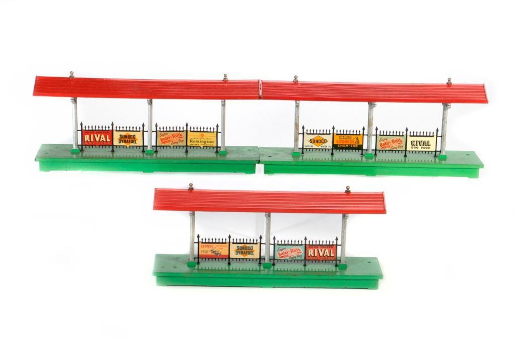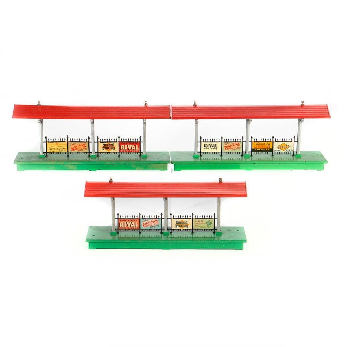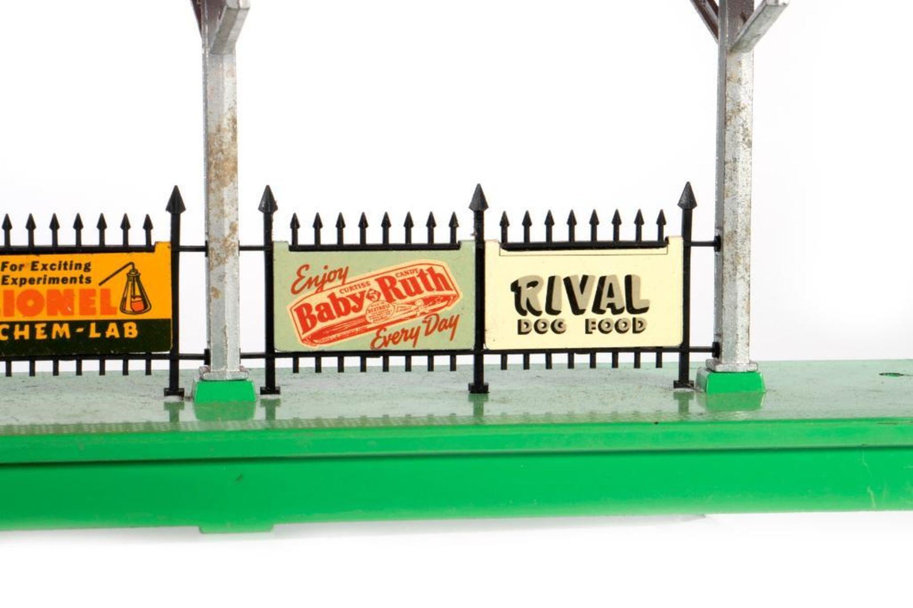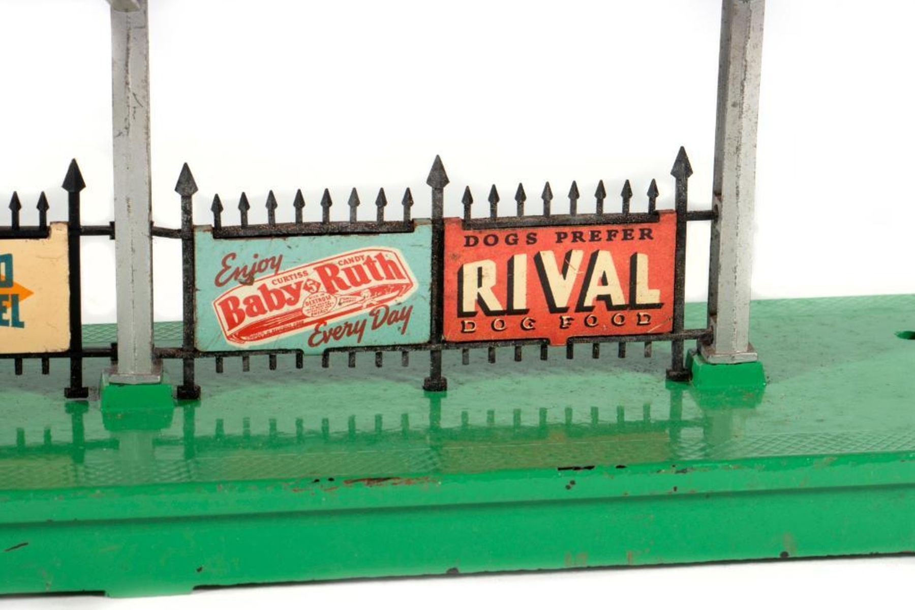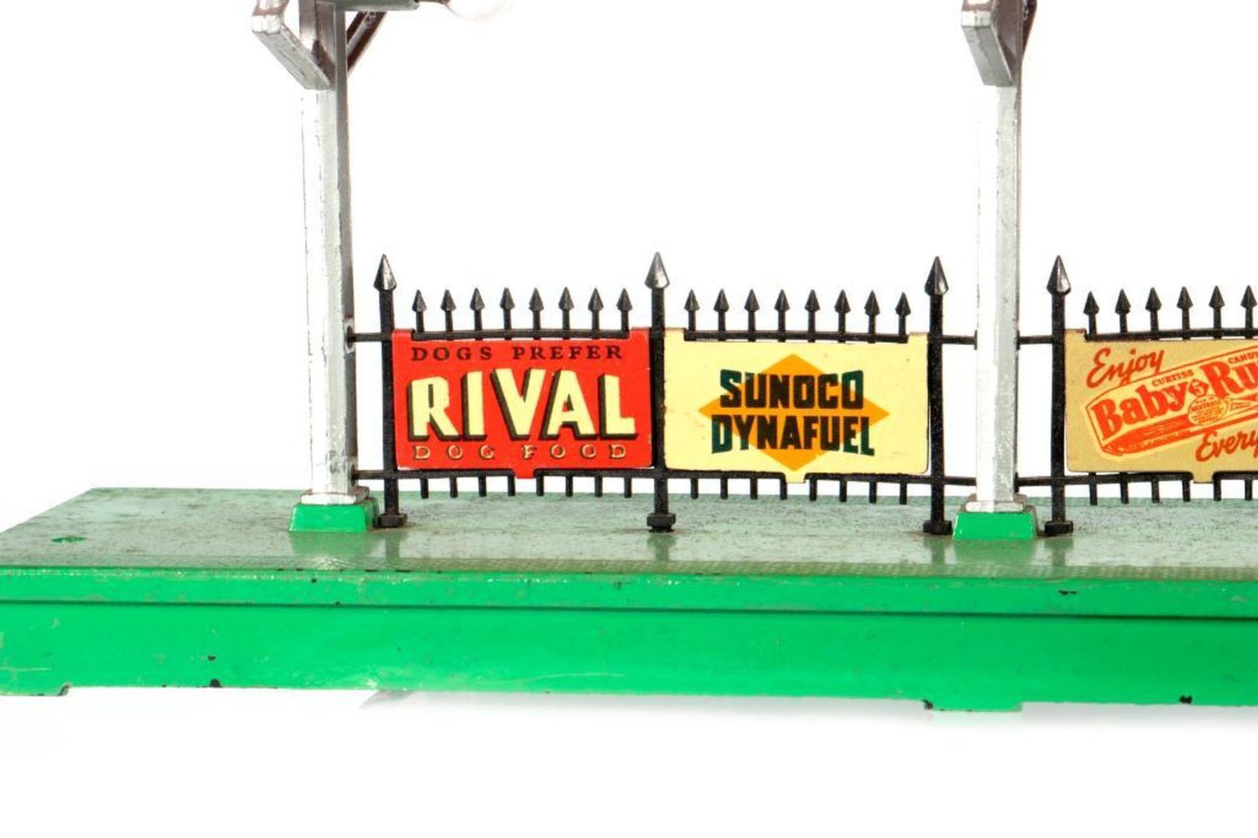 156 Station Platform. Paint wear on corners and edges. Rival Dog Food, Baby Ruth, Lionel Chem-Lab, Sunoco signs. 156 Station Platform. Paint wear on corners and edges. Remington Typewriters, Baby Ruth, Sunoco Dynafuel, Rival Dog Food signs. 156 Station Platform. Paint wear on corners and edges. Rival Dog Food, Baby Ruth, Sunoco Dynafuel, Lionel Construction Kits signs.