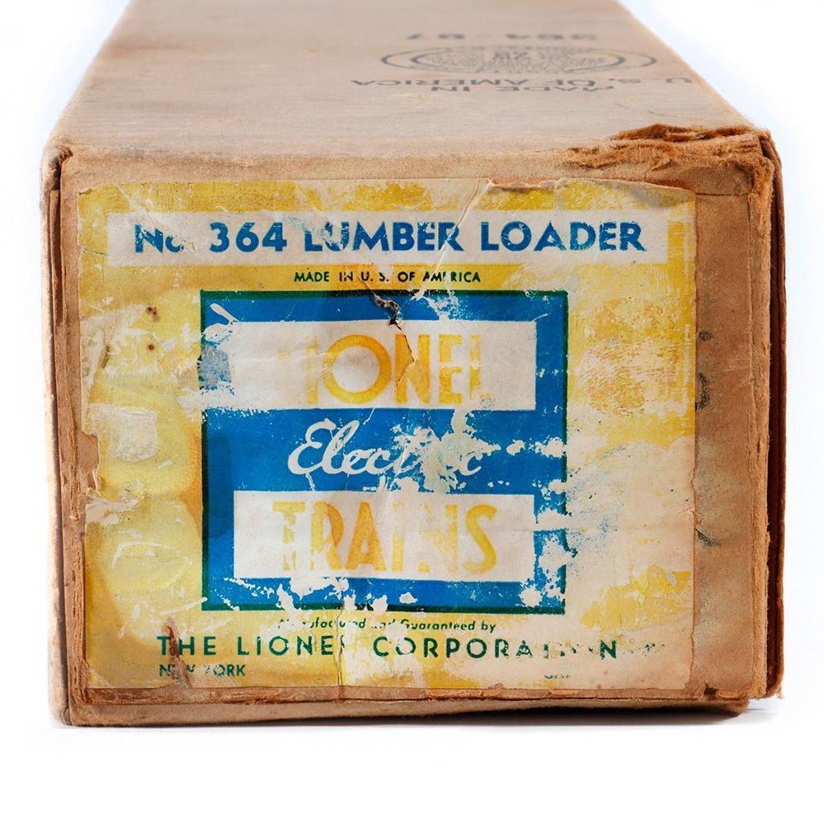 Lionel 364 Lumber Loader in original box with faded label. Box is well worn.