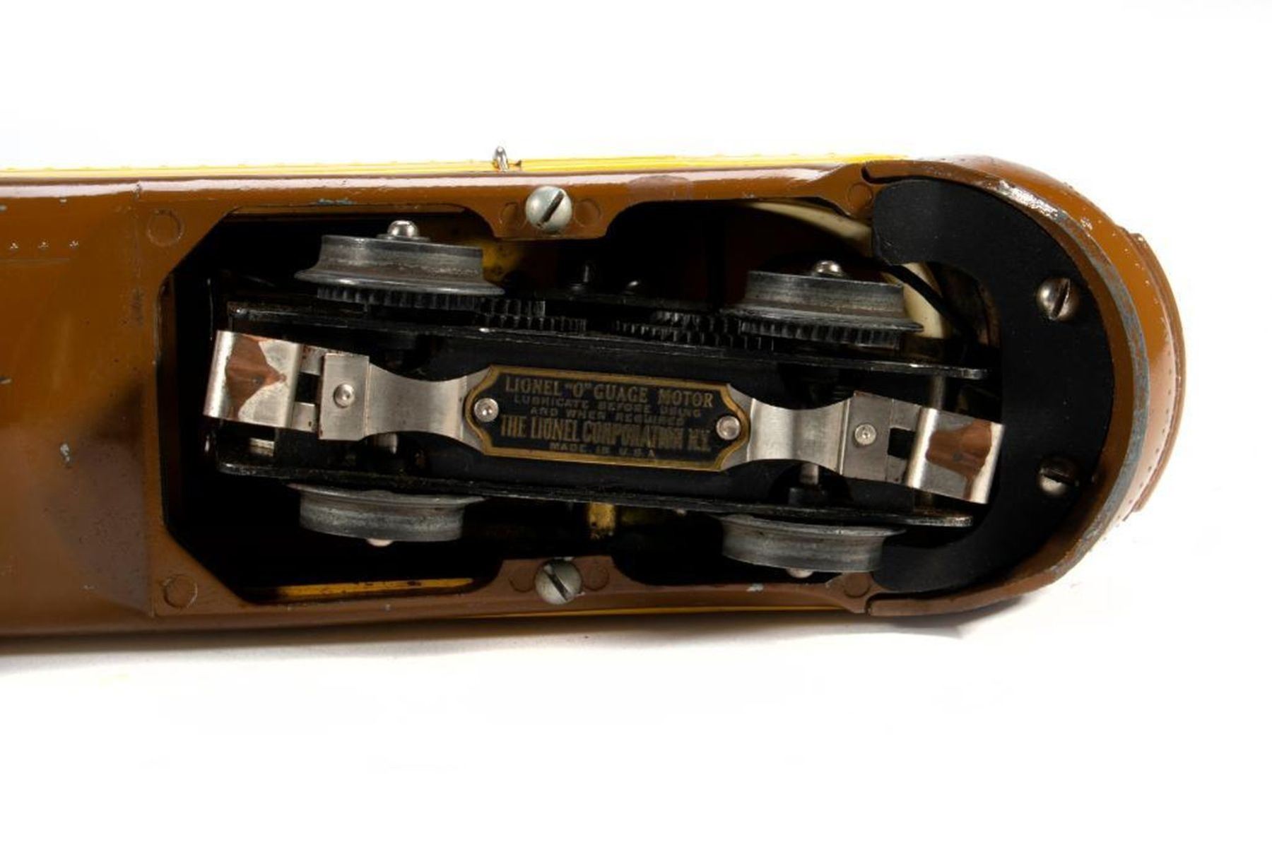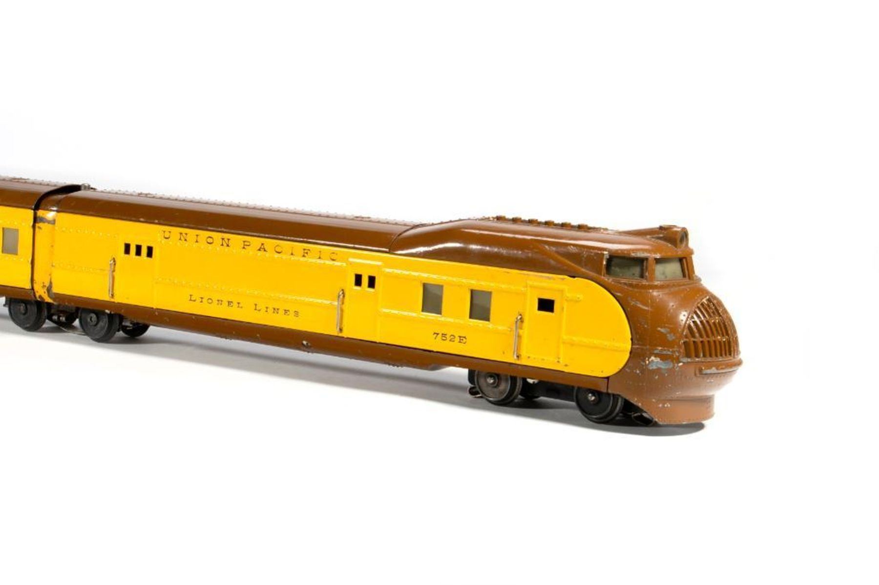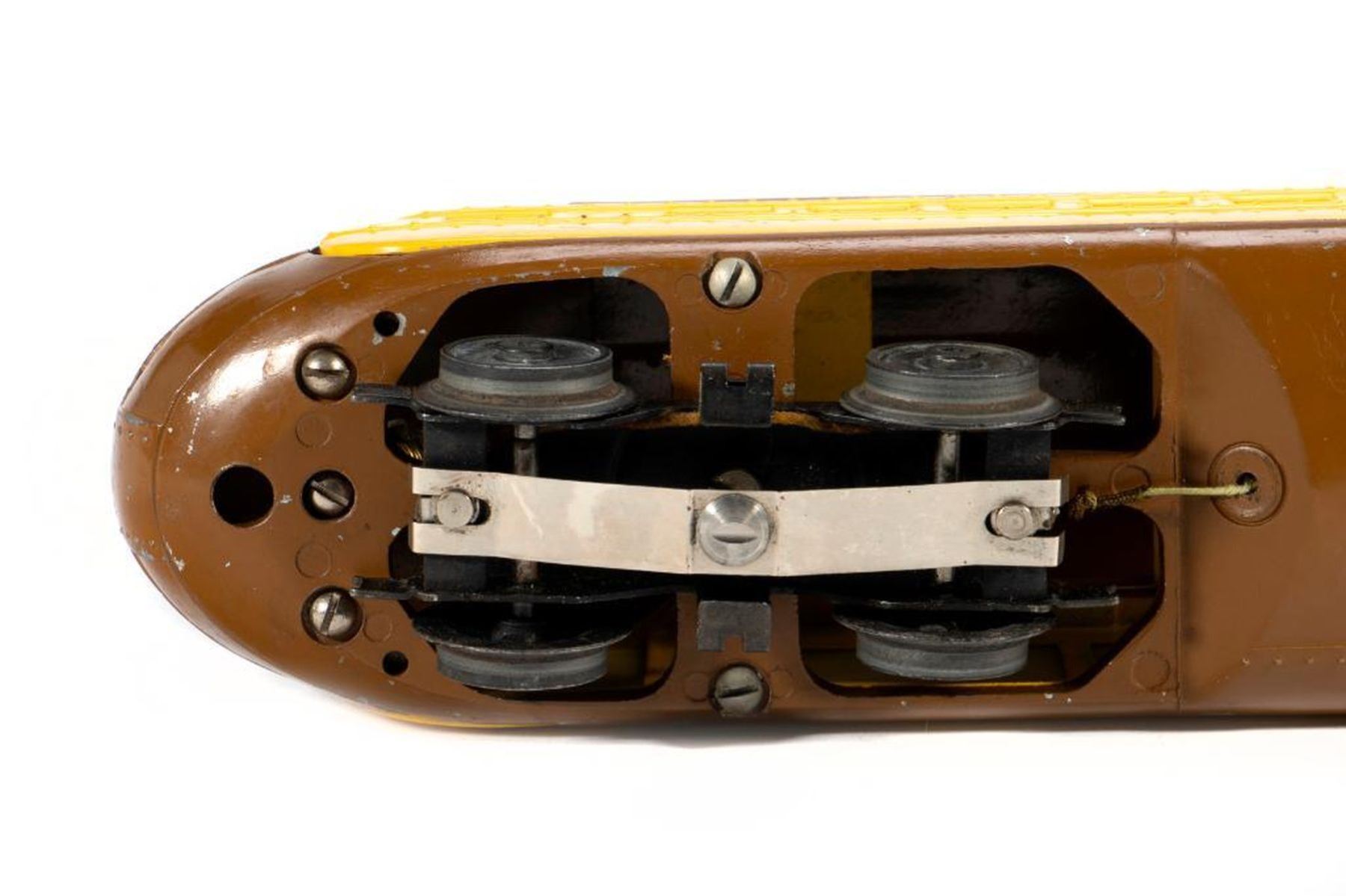 Locomotive, coach, observation, two vestibules. Little paint wear, minimum casting swelling. Pickup wear.