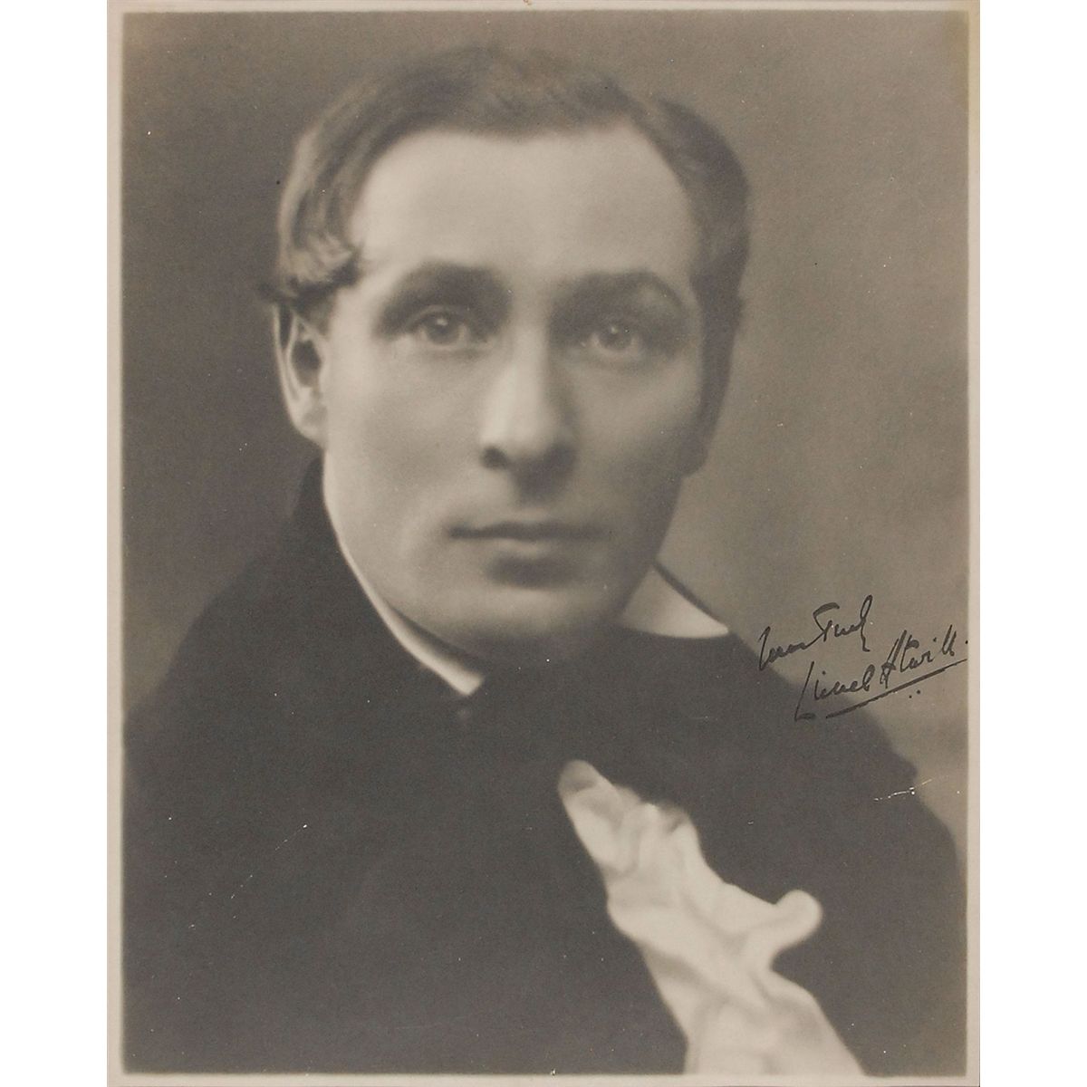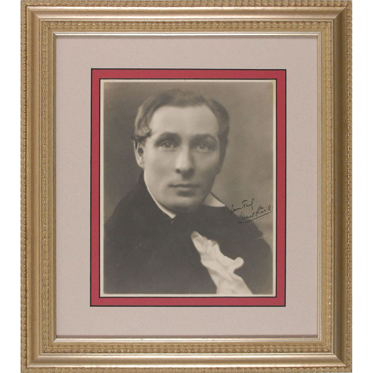 British actor (1885–1946) best known for his roles in such horror films as Mark of the Vampire and Son of Frankenstein and as Moriarty to Basil Rathbone’s Sherlock Holmes. Handsome matte-finish 7.5 x 9.5 photo of Atwill in a fancy suit, boldly signed in fountain pen, “Yours truly, Lionel Atwill.” Double-matted and framed to an overall size of 14 x 16. In fine condition, with a trivial surface crease to lower right.