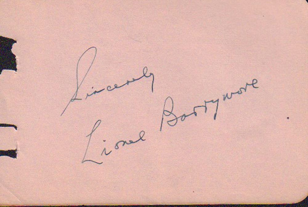 Autograph book page signed by Lionel Barrymore. All items come with a certificate of authenticity good for the life of the piece.