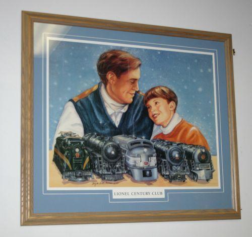 Nicely framed and matted print by Angela Trotta Thomas entitled “Lionel Century Club.” Comes with certificate of authenticity. All plates and negatives have been destroyed. Copyright 1997. Gift to those who purchased each of the limited production train engines pictured on the print. Few collectors achieved this level.