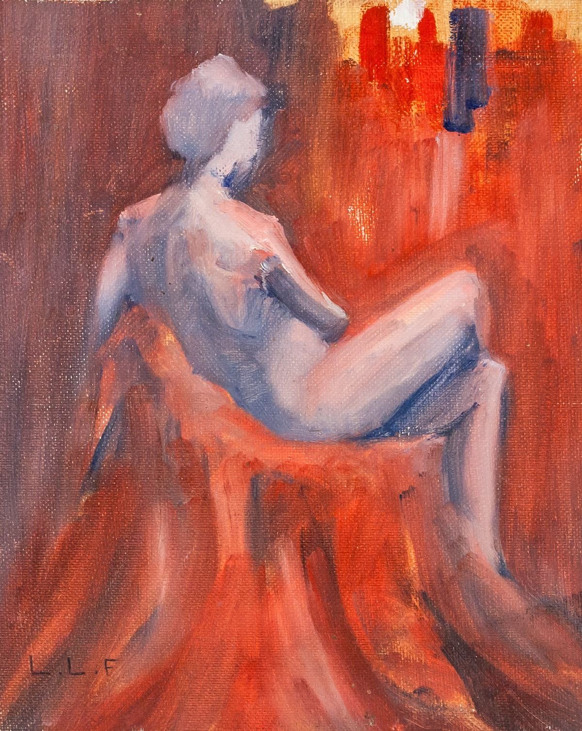 Oil on board. Depicting nude figure sitting side-on to the audience but twisted away to show only the figure's back. Signed "L. L. F" on the bottom left corner. Paper affixed to verso reads "NO. 9 NUDE STUDY BY L. LEMOINE FITGERALD Certified at the side by his daughter Patricia Filzgerald Moriam". "Certified this to be by Lemoine Fitzgerald [illegible]" inscribed on verso. Attributed to Lionel Fitzgerald (1890-1956, Canadian). 25 x 20 cm (10 x 8 inches). PROVENANCE: This lot carries limited provenance from a Private Toronto Collection