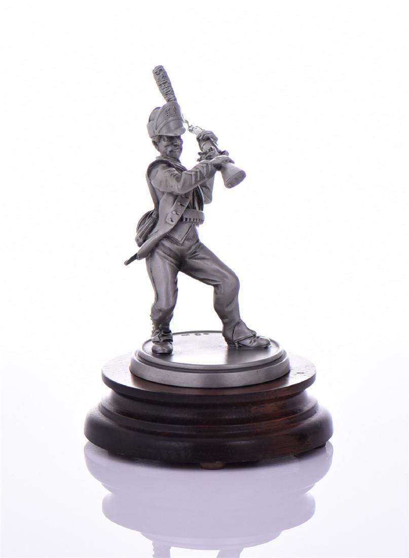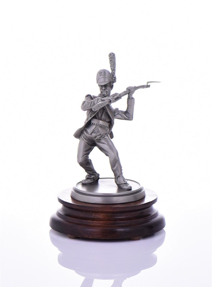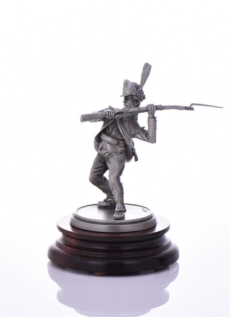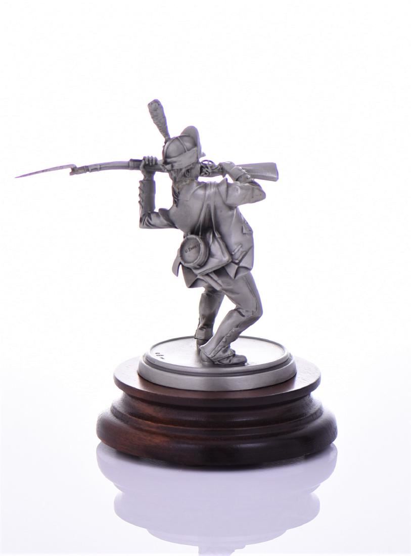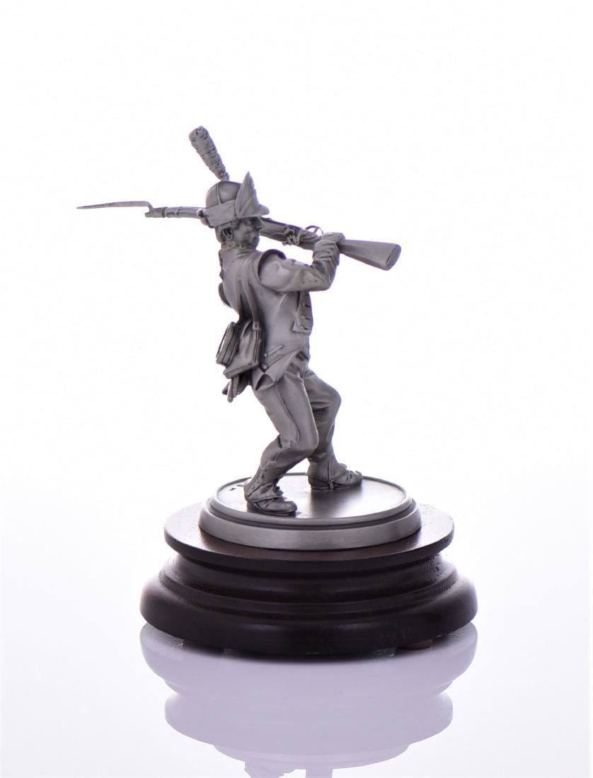 Lionel Forrest, 1982 Titled "Colonial Light Infantryman" 46 of 950. Chilmark's Fine Pewter On Wood Base Vietnam Art Sculpture. Estimated less than 50 yrs old. Pewter is a malleable metal alloy, traditionally 85 to 99 percent tin, with the remainder consisting of copper, antimony, bismuth and sometimes, less commonly today, lead. Silver is also sometimes used. Copper and antimony act as hardeners while lead is common in the lower grades of pewter, which have a bluish tint. It has a low melting point, around 338 to 446 deg F, depending on the exact mixture of metals. (Wikepedia) Size and/or Weight: See Measurement Photo. (Photos Represent The Lot Condition.)