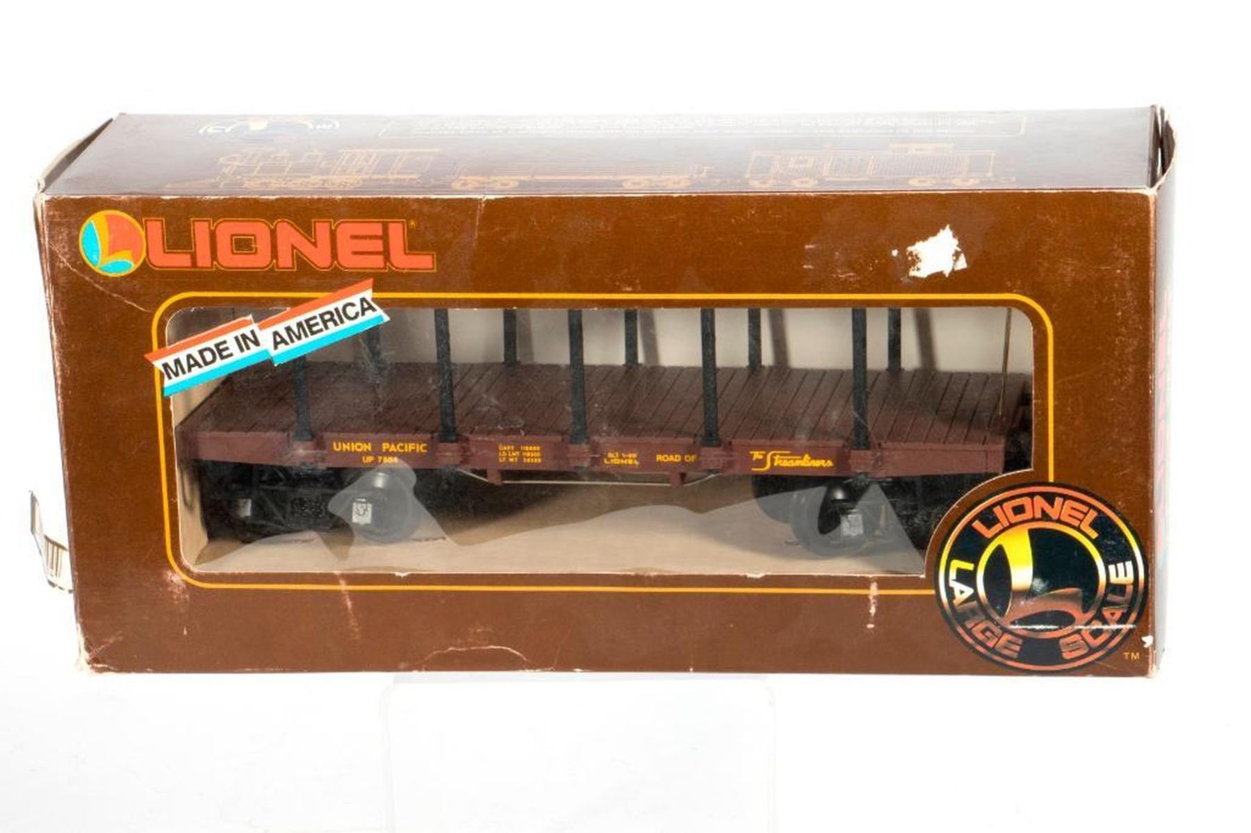 Lionel Large Scale (G Scale) Union Pacific Flat Car with Stakes; Bachman G scale Orchard Supply Hard