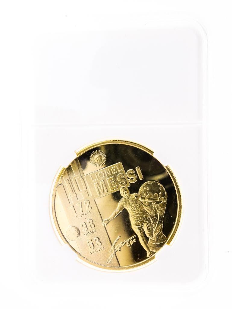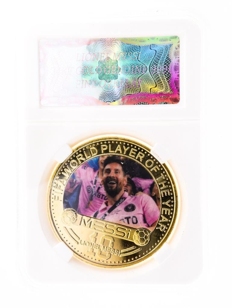 Lionel Messi - 24kt Gold Fine Overlay Collector Medallion World Player of The Year Slabbed