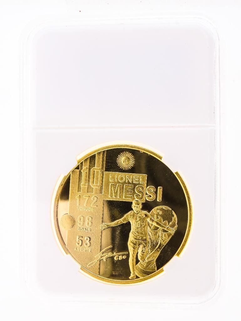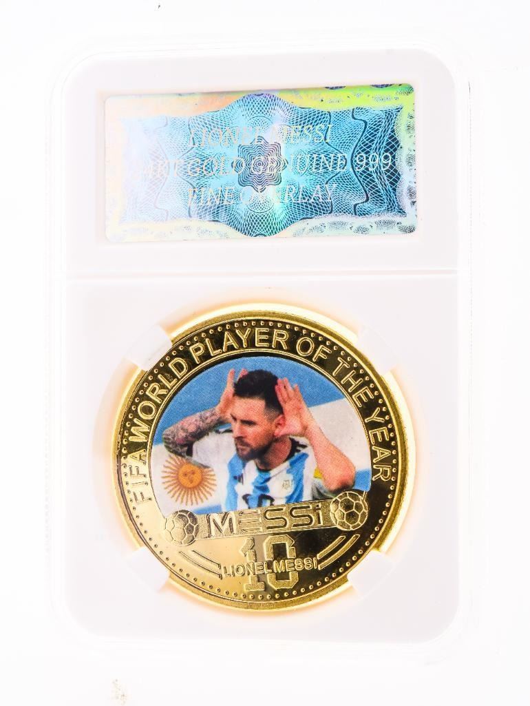 "Lionel Messi" World Player of The Year 24kt Gold Overlay Medallion Slabbed Hands Up - - COIN~279