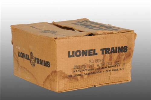 Description Post-war. Box only. Set that went in this box goes with sub base. Box is rubber stamped "19394". Set box shows staining and considerable wear but is very good.