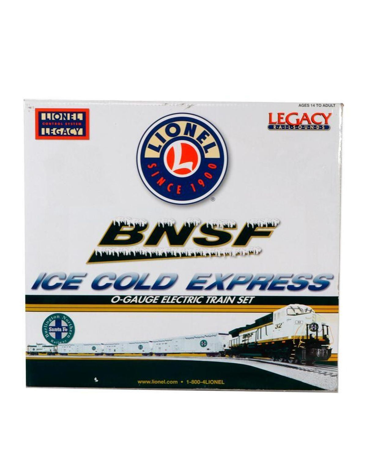 Lionel O Gauge BNSF Ice Cold Express Set AC6000 Locomotive Reefer with Ice Cold "Smoke" Reefer with generator sounds Reefer with interior load Extended vision caboose In original boxes and original set box