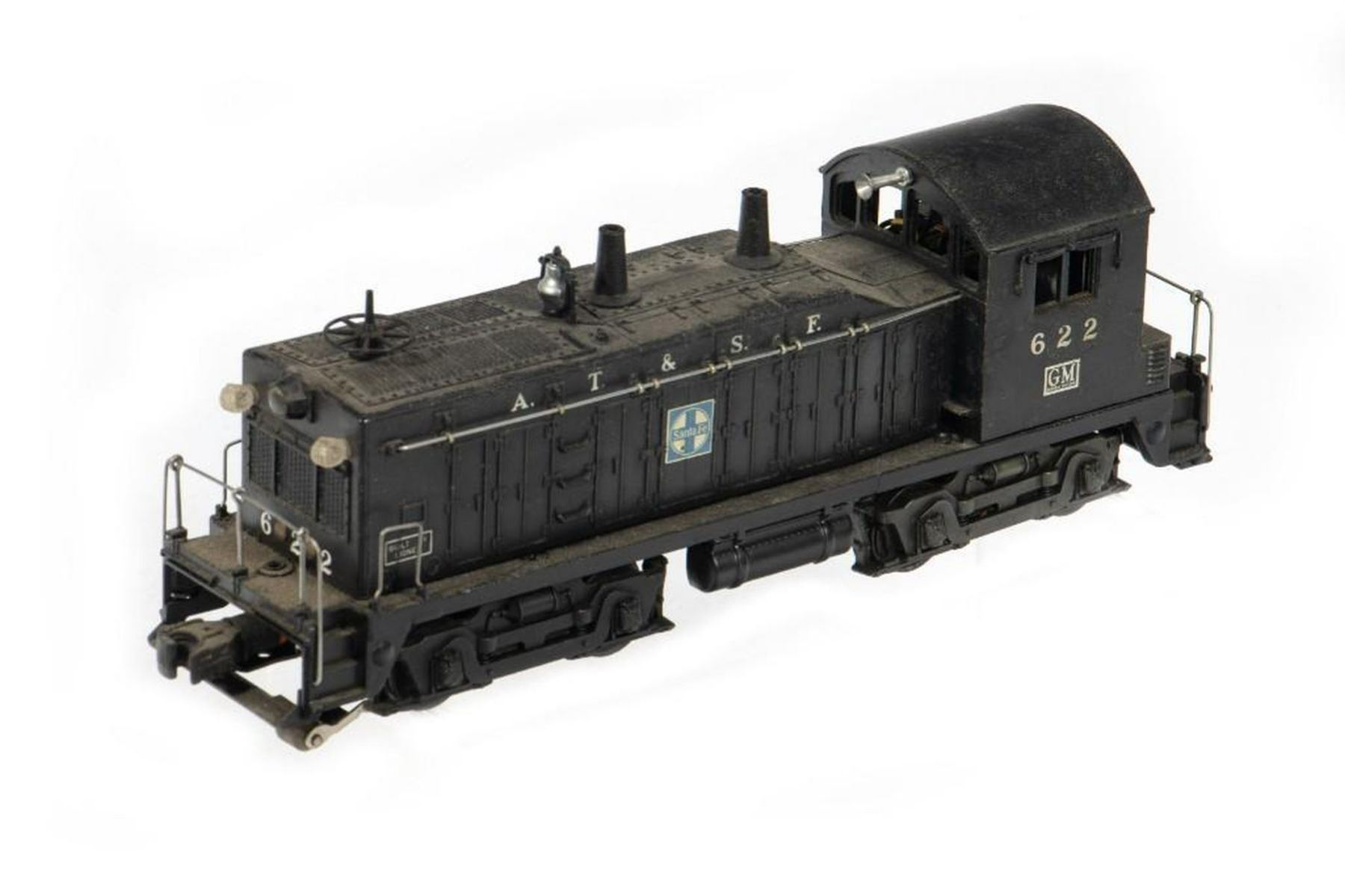 Lionel Post War 622 Santa Fe Diesel Switcher. Marker lights, radio antenna, bell, stacks, horn, handrails, trucks and couplers intact. Dusty
