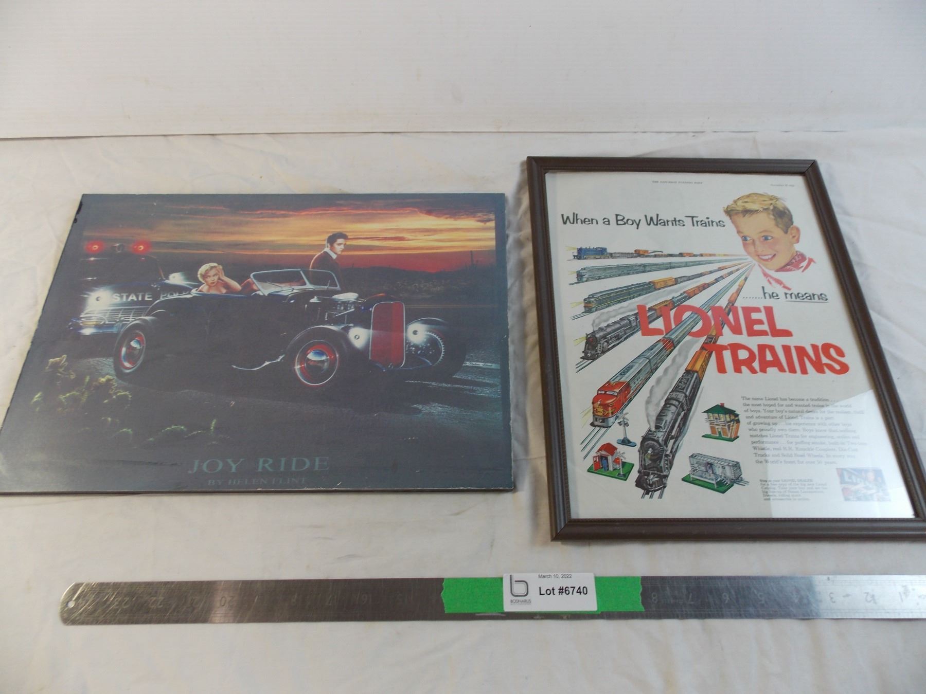 Lionel Train advertisement in frame + Joy Ride wall placard