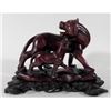 This sculpture portrays a strong lioness fiercely protecting her cub. It has a bold form in dark brown, with etched surface details. Artist: There is no name marked, but there are some markings underneath Medium: Heavy, solid composite material, on removaeable custom wooden stand Dimensions: 3 x 6 x 8 inches Condition: Excellent