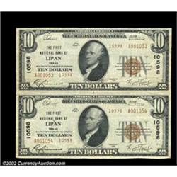 Lipan, TX - $10 1929 Ty. 2 The First NB Ch. # 10598An uncut pair of Type Two tens which clearly neve