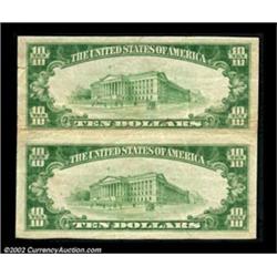 Lipan, TX - $10 1929 Ty. 2 The First NB Ch. # 10598An uncut pair of Type Two tens which clearly never circulated but picked up a fair amount of folds over the years, along with a small tear on the right side of the top note. This is a rather scarce bank, with just six small notes recorded in the Kelly census from this Hood County institution. Very Fine. Important notice: We expect to be auctioning lots at the rate of 200-250 per hour. Sometimes eBay Premier live bid software cannot keep up with that pace, so we strongly recommend that you place a realistic proxy bid now as insurance to avoid disappointment. Also please note that all Heritage/CAA lots purchased through eBay Premier carry a 20% Buyer's Premium. Please make sure you read the Terms and Conditions.