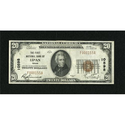 Lipan, TX - $20 1929 Ty. 1 The First NB Ch. #