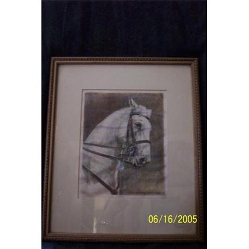This beautiful drawing of a Lipizzan has been done on silk and is in wonderful condition. Bottom not a signature but reads; WIEN SPANISCHE REITSCHULE which I believe translates to Vienna Spanish Riding School. Custom framed by Old Virginia Picture Frame Shop. Has come slightly loose over the years for the silk has slight ripples, You should be able to tell from the pictures, I will gladly email more if you are interested in this item! Thank you!!!!
