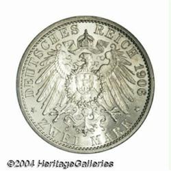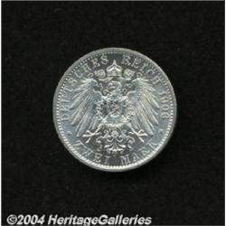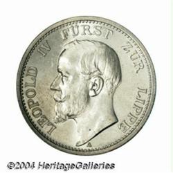 Lippe-Detmold. Leopold IV 2 mark 1906, Bust left/Eagle, KM270, Choice AU.From the Dr. Irving Arenberg Collection. Important notice: Heritage usually auctions material at the rate of 200-250 lots per hour. On some occasions eBay Live bid software or the Internet may not be able to keep up with the pace of the auction. We recommend placing a realistic absentee bid now as insurance to avoid disappointment. Occasionally the auctioneer may eliminate or reject an eBay Live bid, and the auctioneer may also reopen a lot after the close of the eBay live bidding (usually because we missed an audience bid), and may reject your bid even if it shows you as the winning bidder. By bidding via eBay Live, you agree that Heritage may award the lot to another bidder at its sole discretion under the circumstances described above or any other reasonable circumstances. Also please note that all Heritage lots purchased through eBay Live carry a 20% Buyer's Premium. Please make sure you read the Terms and Conditions before you bid.