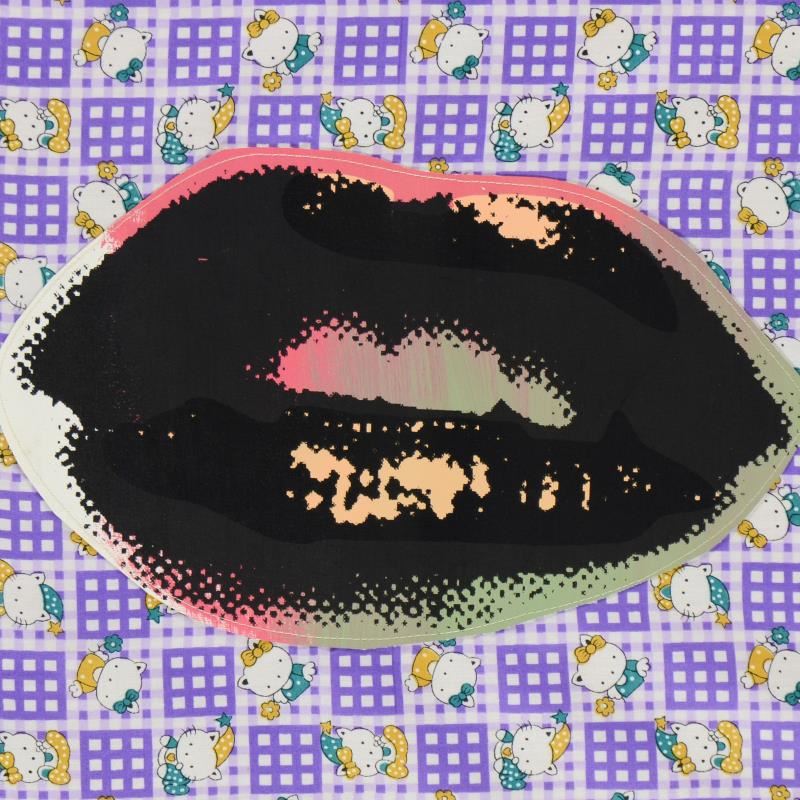"Lips" is a hand painted limited edition silkscreen on canvas with Hello Kitty fabric background by Andy Warhol protege Steve Kaufman (1960-2010). This piece is AP numbered 17/50 and hand signed inverso. Includes letter of authenticity. As is common with Kaufman's works, this piece may have perceived minor flaws, but is in overall good condition. Measures approx. 24" x 16" (fabric background), 16" x 9" (image).