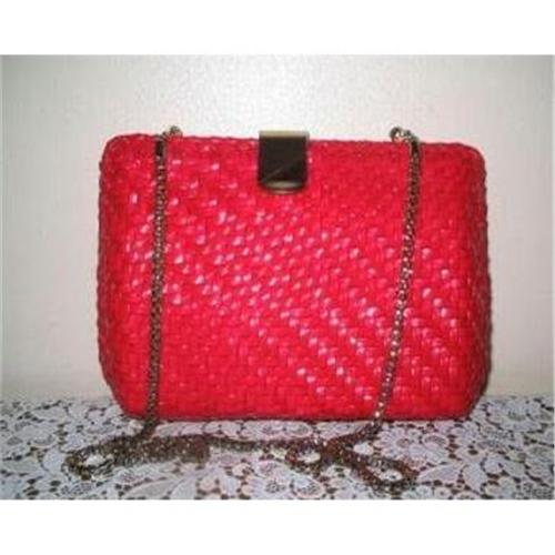 </font></strong>This is so cute !!! A real little sweetheart of a purse. Can be worn as a shoulder bag or clutch purse - the shoulder strap is completely retractable. Made from glazed straw with a shiny finish this bag is in excellent vintage condition and shows no previous use at all and there is no damage to the straw/wicker anywhere. The clasp on this handbag is very attractive - it is two tone gold and silver - goldtone for the most part with the end part having a slanted design in silver tone. Fully lined in matching red color vinyl with one small zippered pocket. The interior is perfectly clean and no damage anywhere. Measurements are 8-1/2" inches wide by 5-3/4" inches in height and the depth is 2-1/2" the retractable gold tone box link chain shoulder strap has a drop of 17" inches. Very sweet vintage bag - these basket style bags are becoming more difficult to come by now and this one is a real beauty. </font>