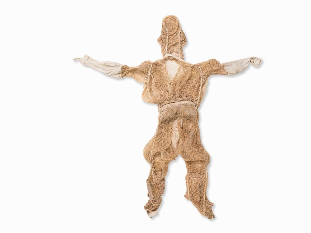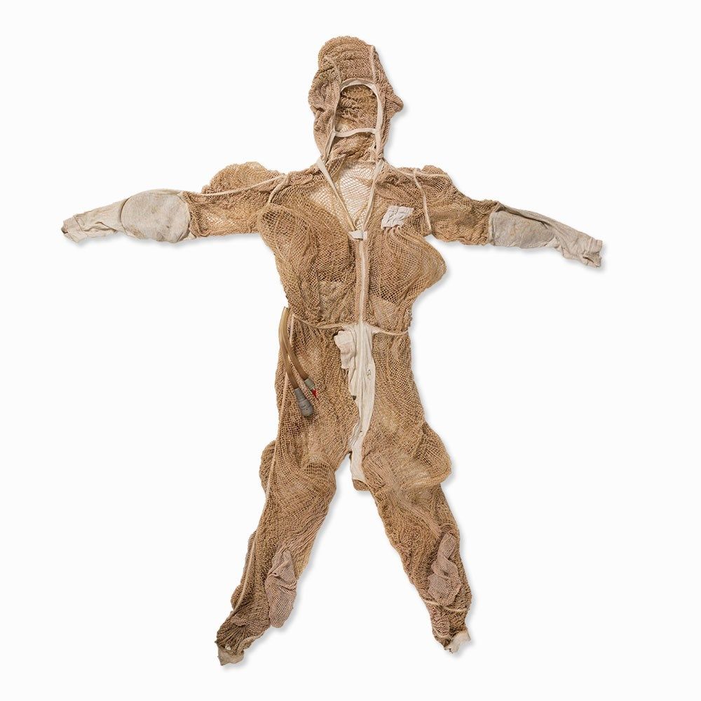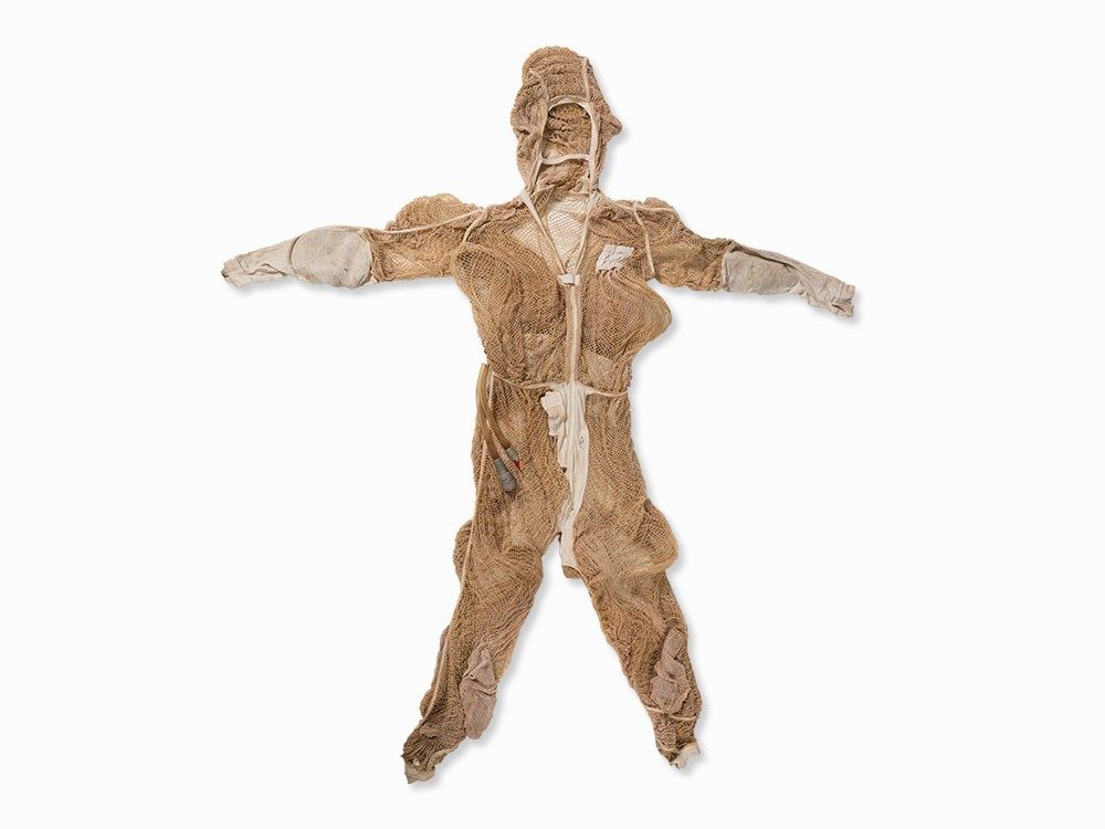 Inside the garment there is a label with the numbering ‘4787 p-1’, the valves are numbered and one hand is inscribed in Cyrillic ‘Prisp. Sutski for gloves’. The suit displays traces of wear. The dimensions are ca. 155 x 40 cm (height x width).