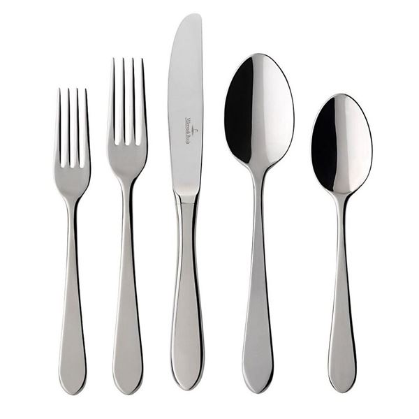 5-piece classic design cutlery set includes dinner fork, salad fork, knife, dinner spoon, and teaspoon, new.