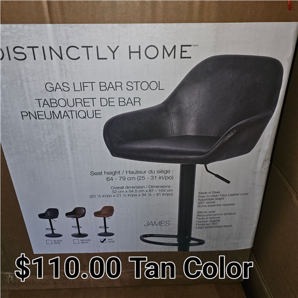 distinctively home gas lift bar stool,Adjustable height 64-79 cm, easy to clean faux leather cover, tan color, new.